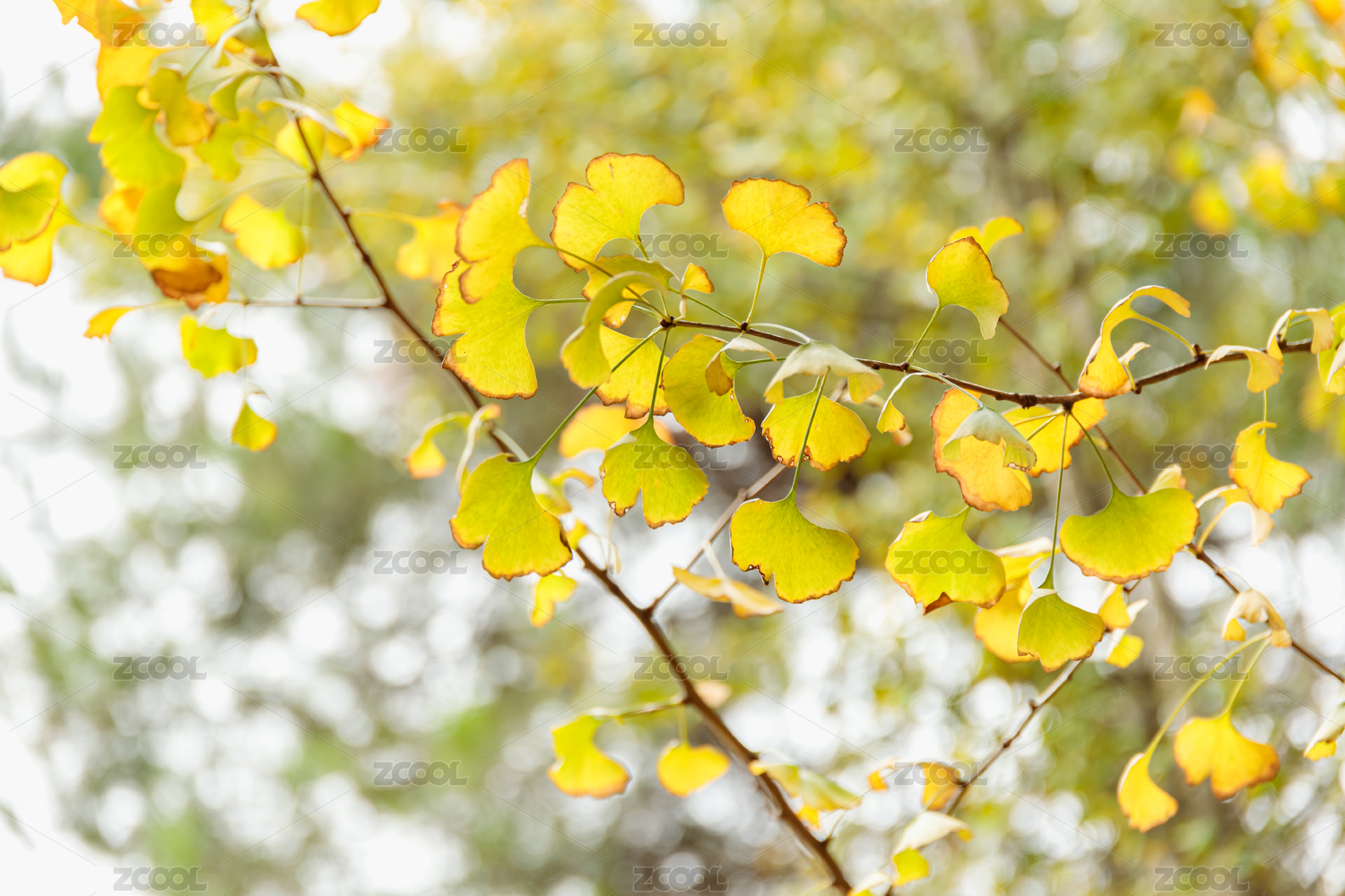 秋天,早晨,山林,黄叶,叶子,植物,阳光