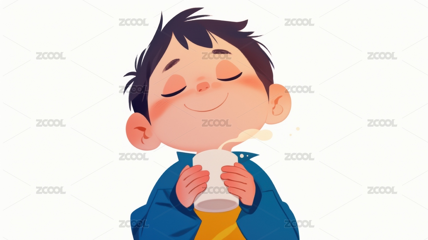 男孩享受热饮的温馨时刻
