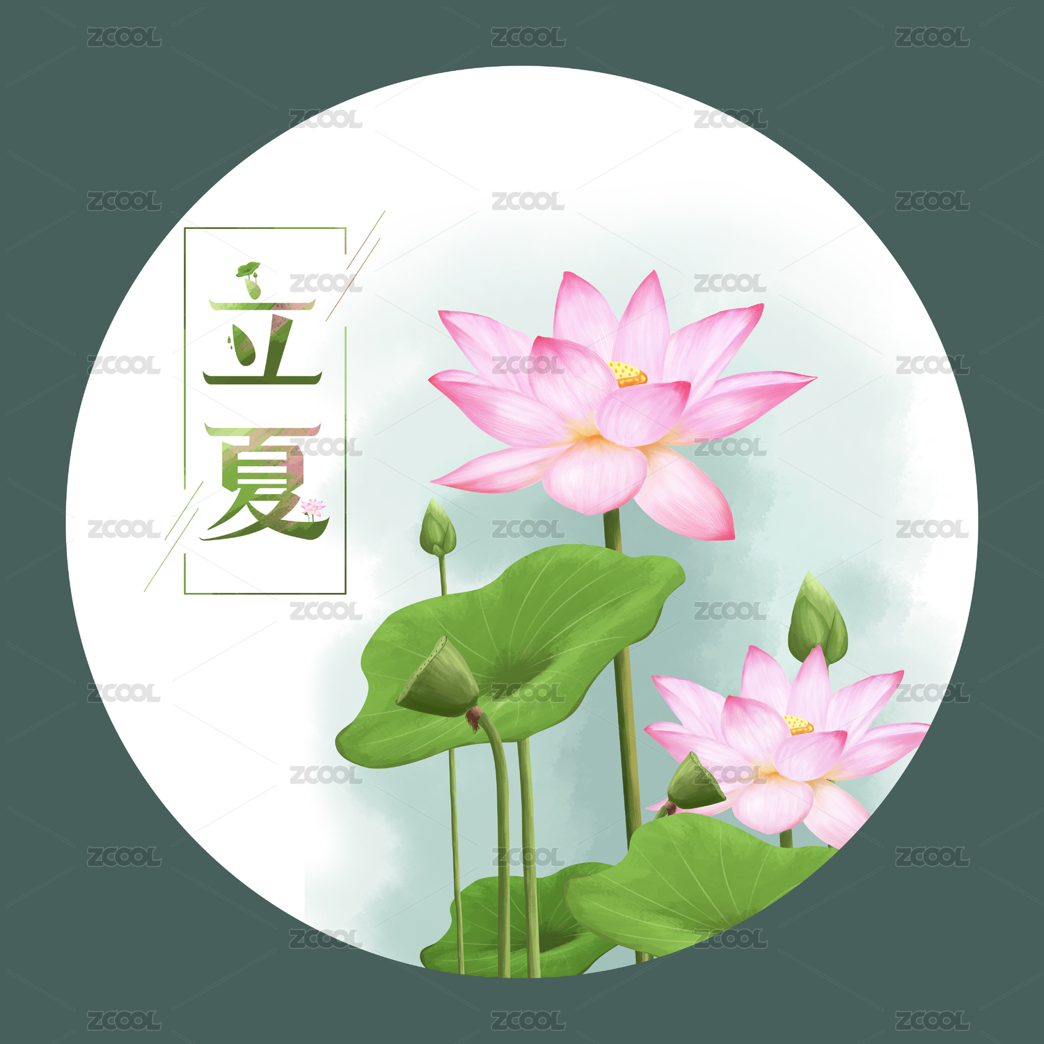 立夏艺术字下一片池塘中盛开着莲花莲叶