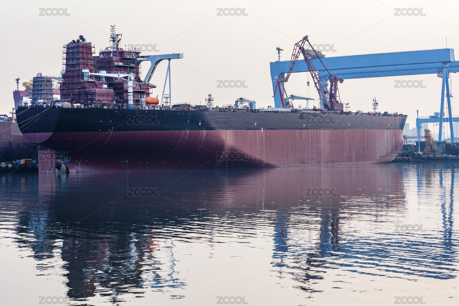 大连钻石湾造船厂海边正在建造的万吨巨轮