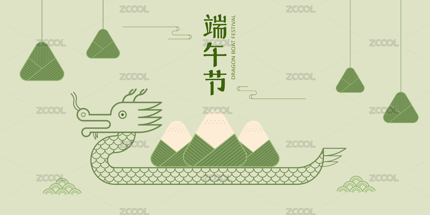 线,龙,中国风,端午节,龙舟,插画,五月初五,祥云,绿色