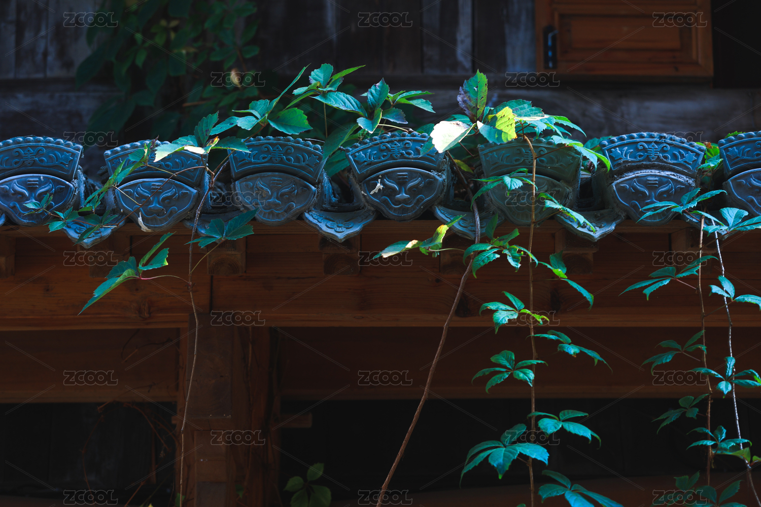 四川成都洛带古镇民居天井青瓦屋顶及防火墙
