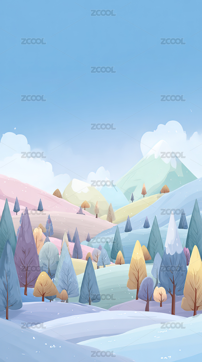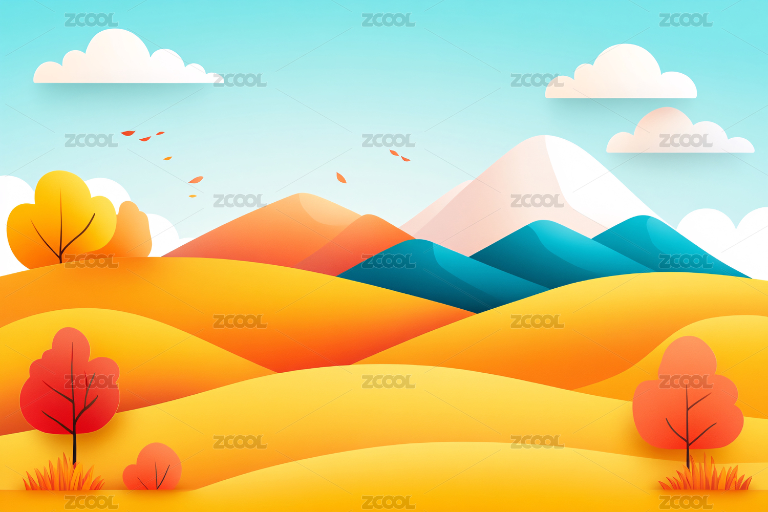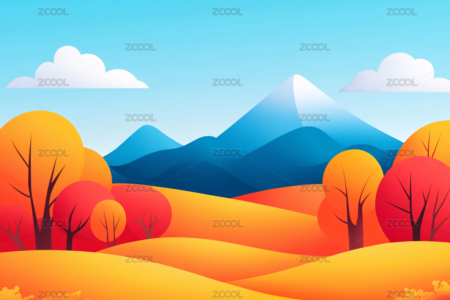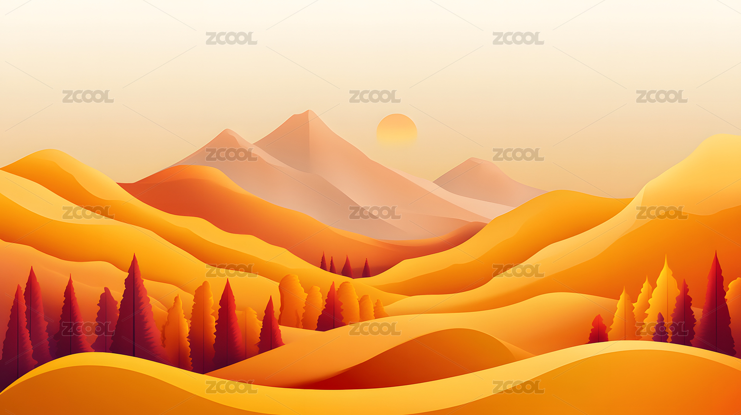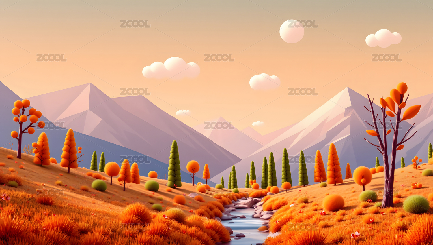 可爱,抽象,艺术感,秋天,山脉,风景,3D,插画,素材,卡通