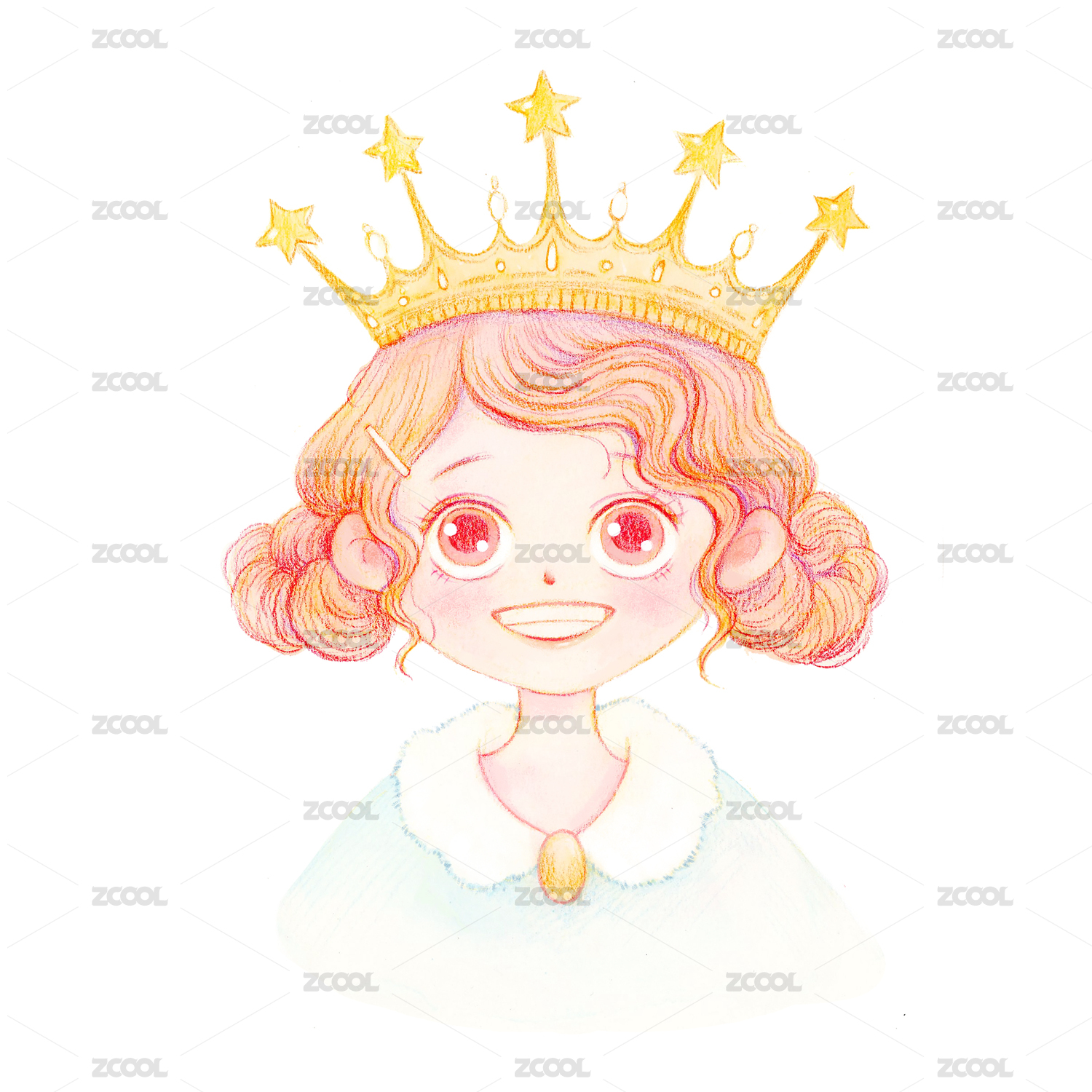 一个戴着王冠的卡通女孩穿着粉色连衣裙站着