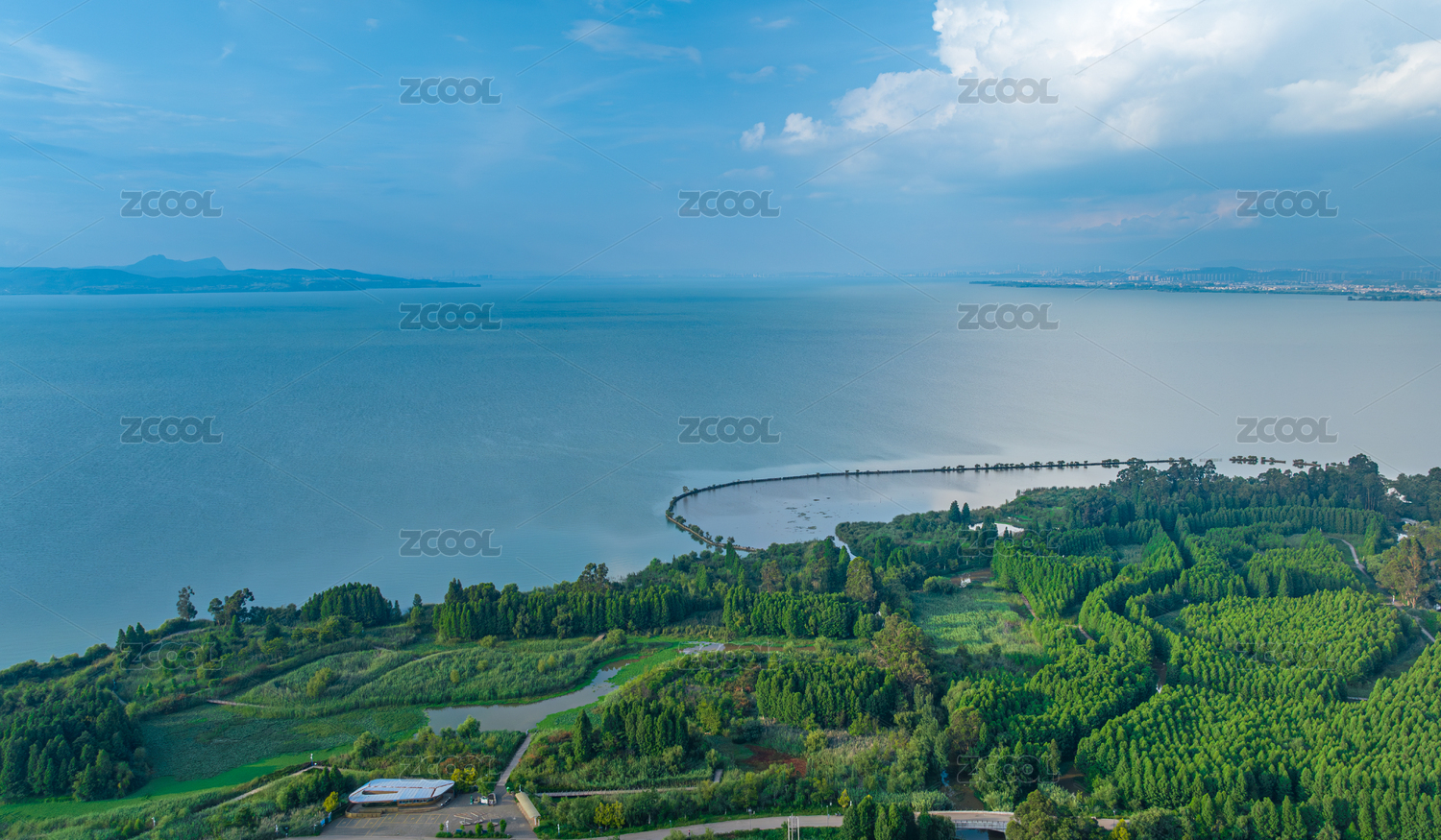 航拍云南昆明滇池呈贡斗南湿地公园生态湖泊