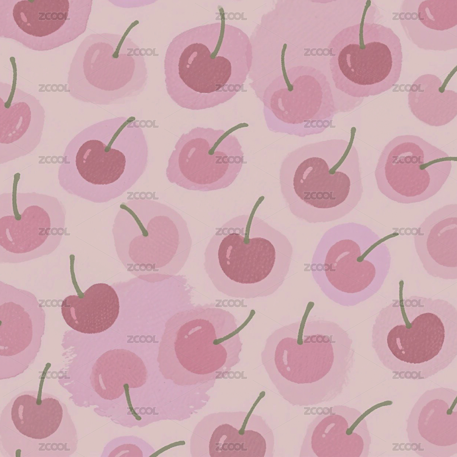 水果平铺背景卡通樱桃印花图案