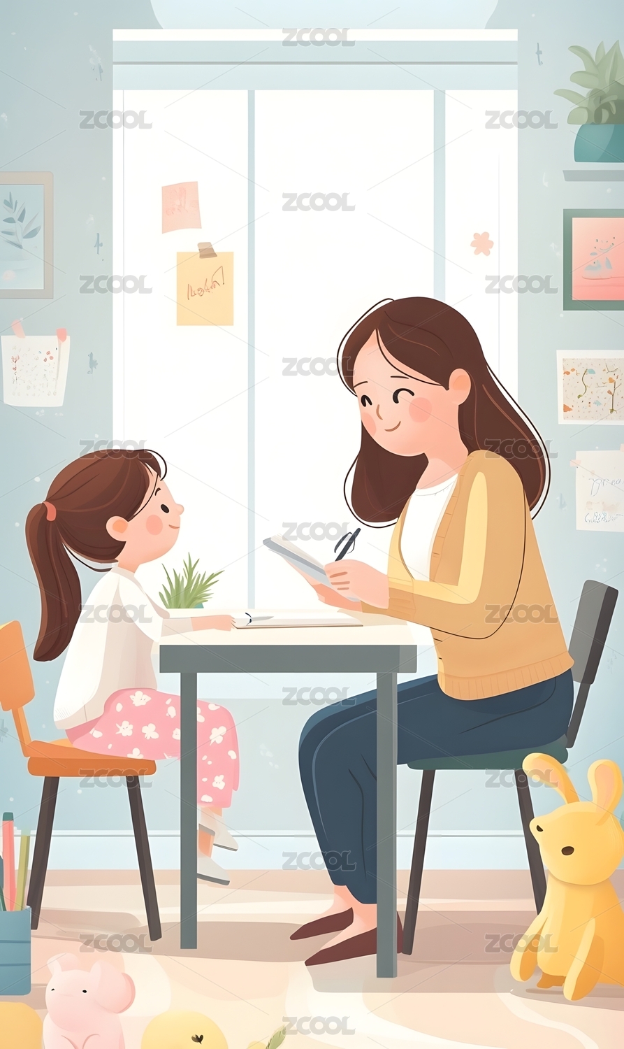 家长,爸爸,妈妈,辅导,教育,小孩,女儿,写作业,作业,书本
