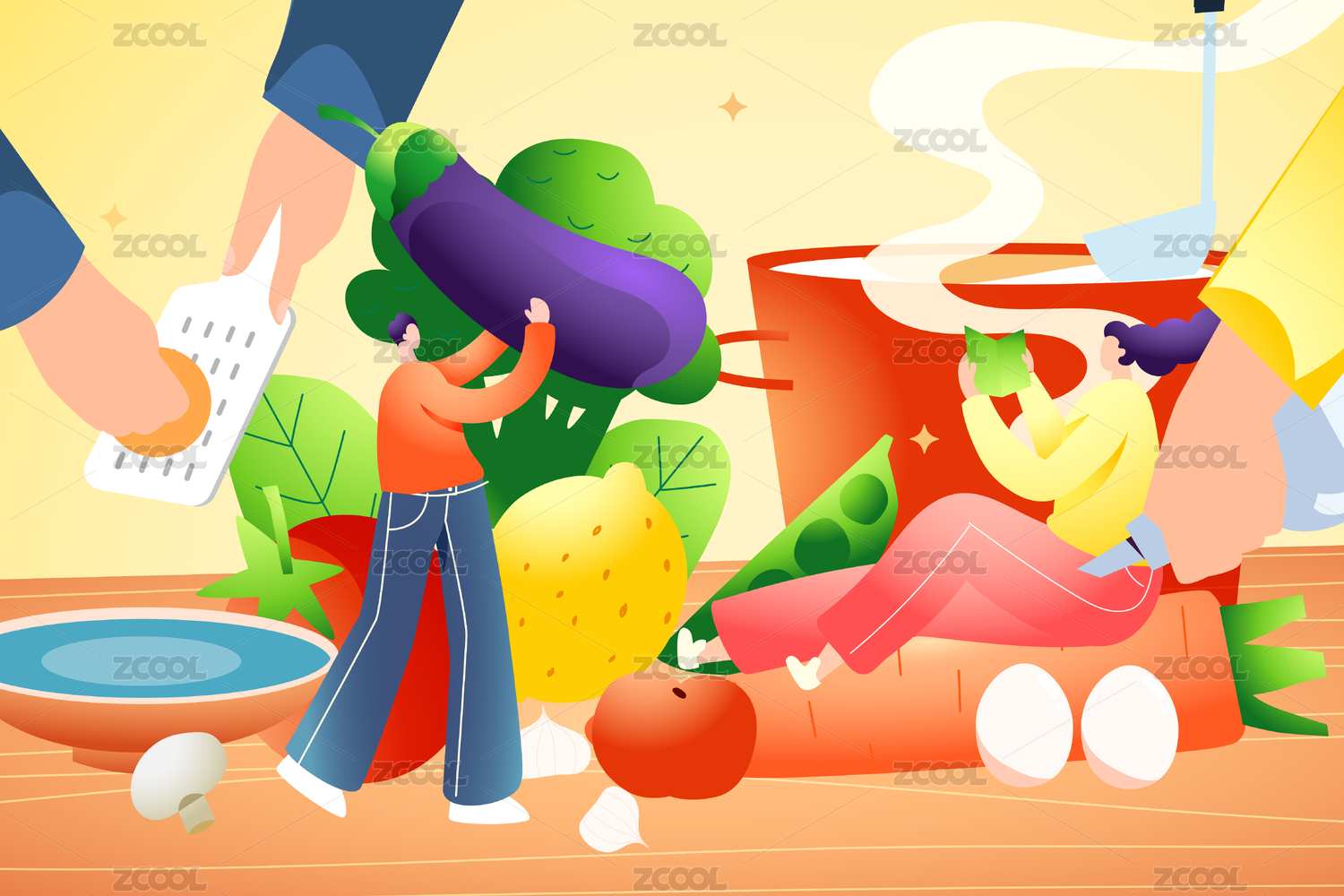 女孩,扁平插画,扁平人物,女生,温馨,温暖,水果,橙子,橘子,葡萄