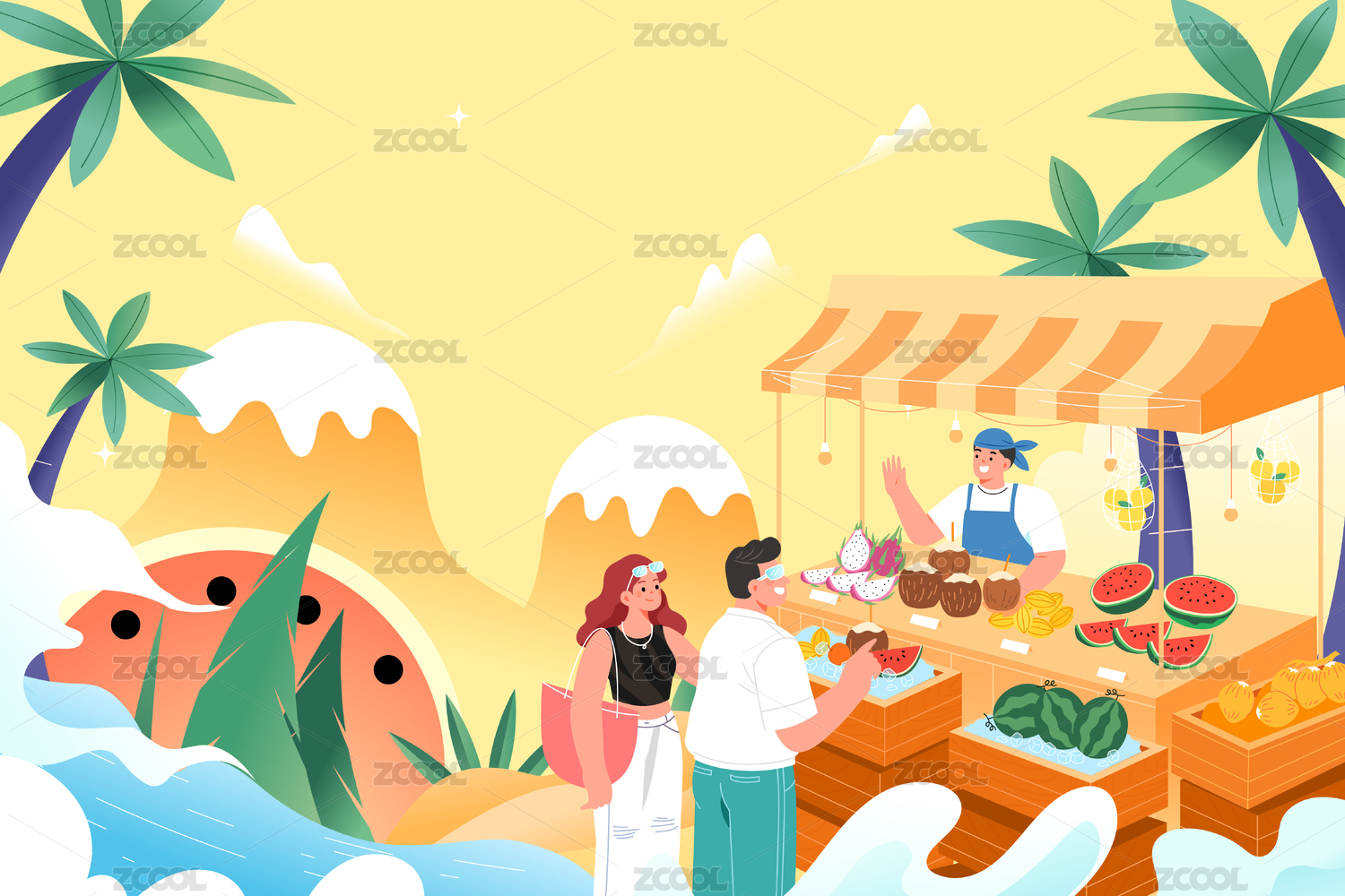 夏天人物音乐派对小暑节气夏日美食雪糕插画
