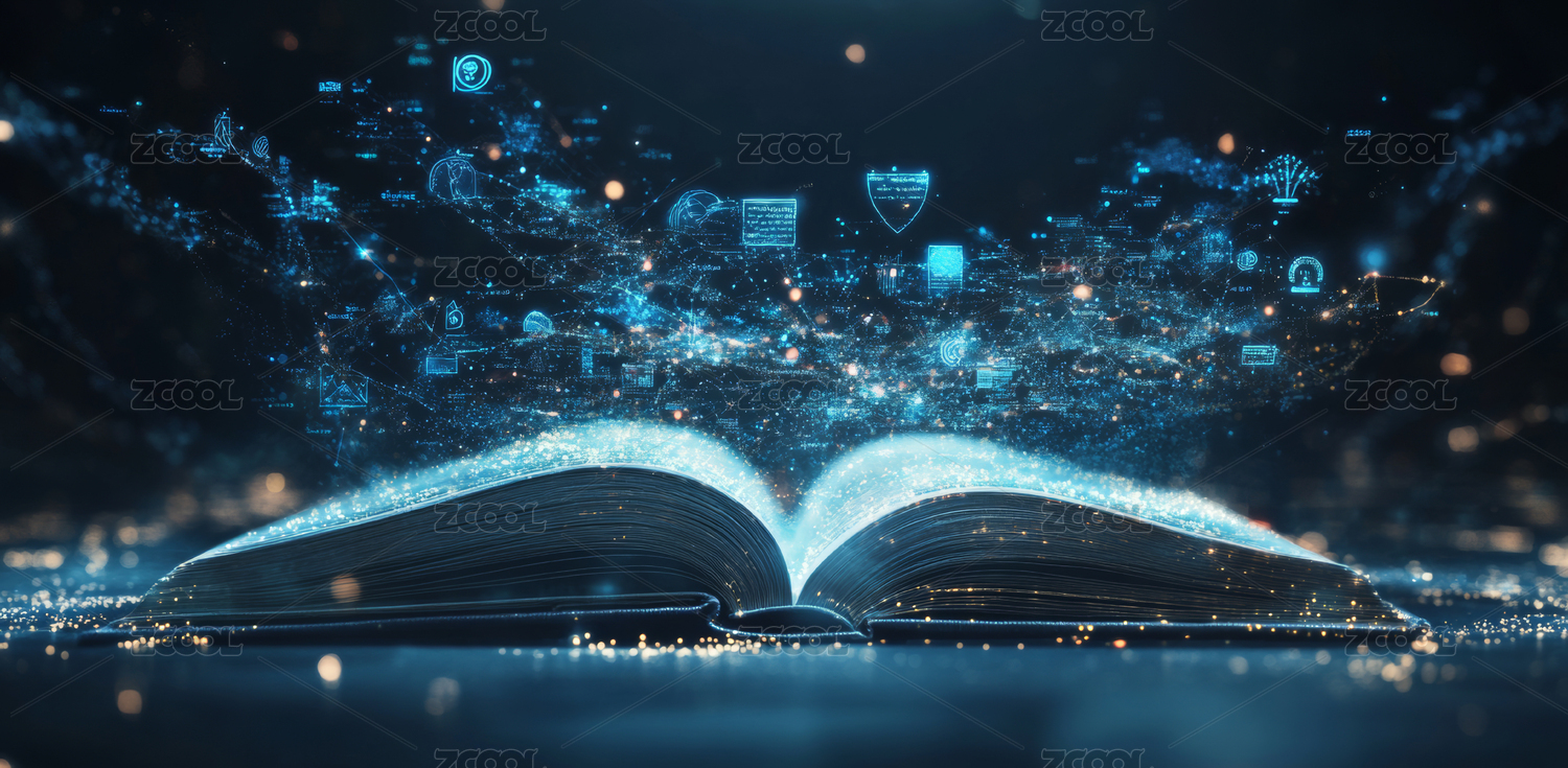 全息,魔法书,奇幻,璀璨,3D世界,灯光,书页,全息风格,科技感,科技