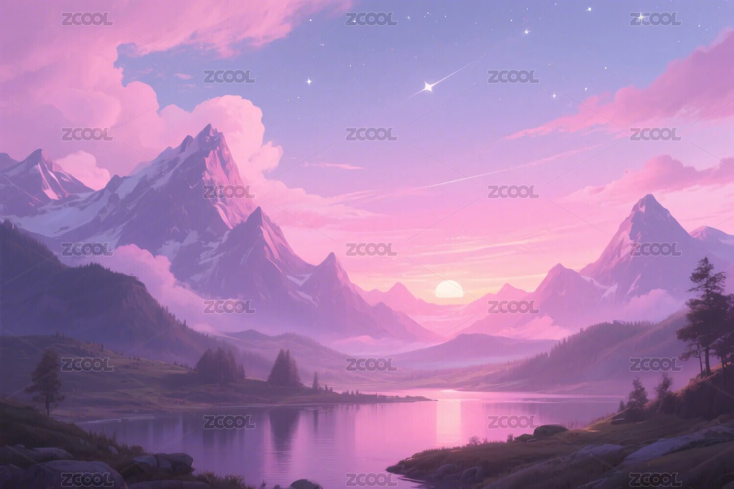 梦幻山景与星空倒影