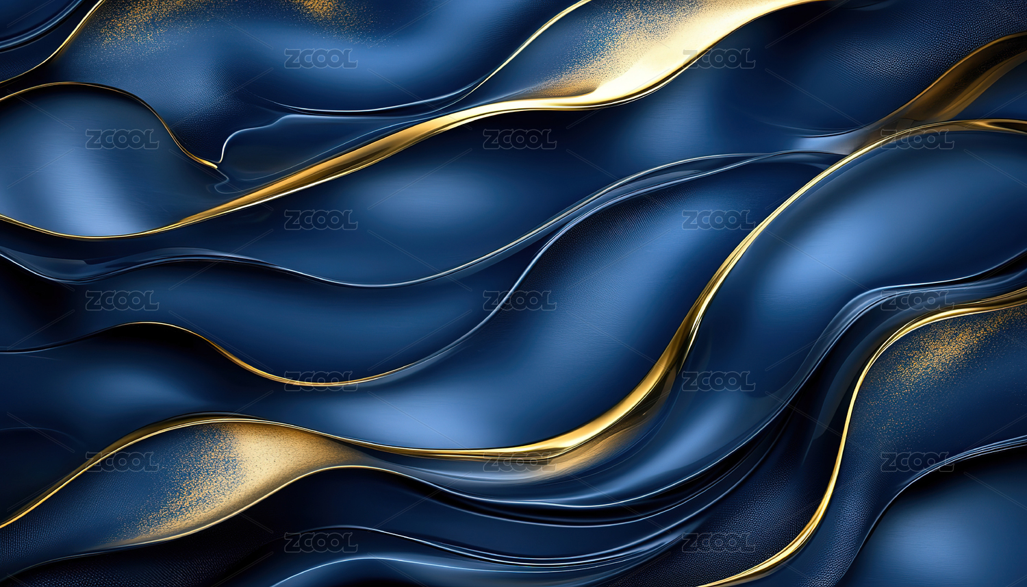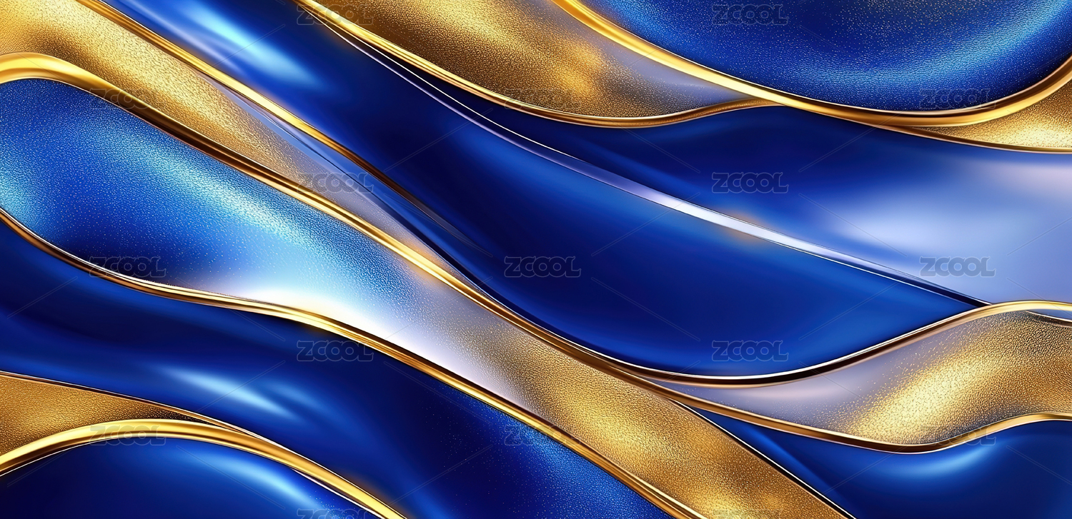 豪华蓝色金色抽象闪亮的波浪设计元素
