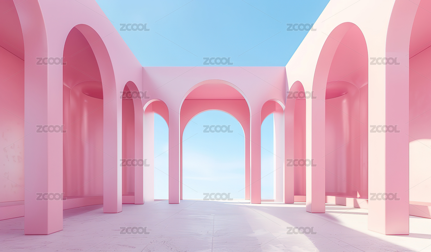 三维图形,现代,几何形状,创造力,展览,明亮,形状,人造空间,门,墙