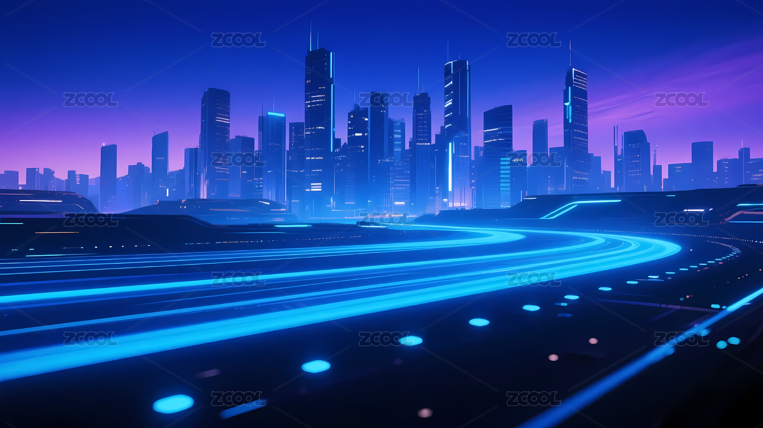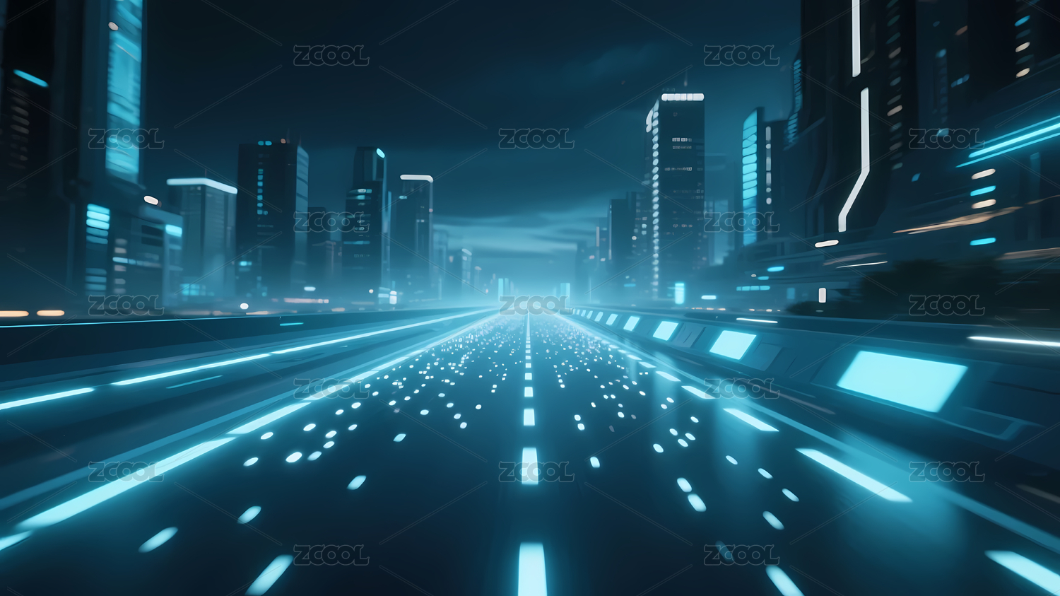 航拍,俯视,赛博朋克,夜晚,科技感,现代,城市,高架,道路,3D