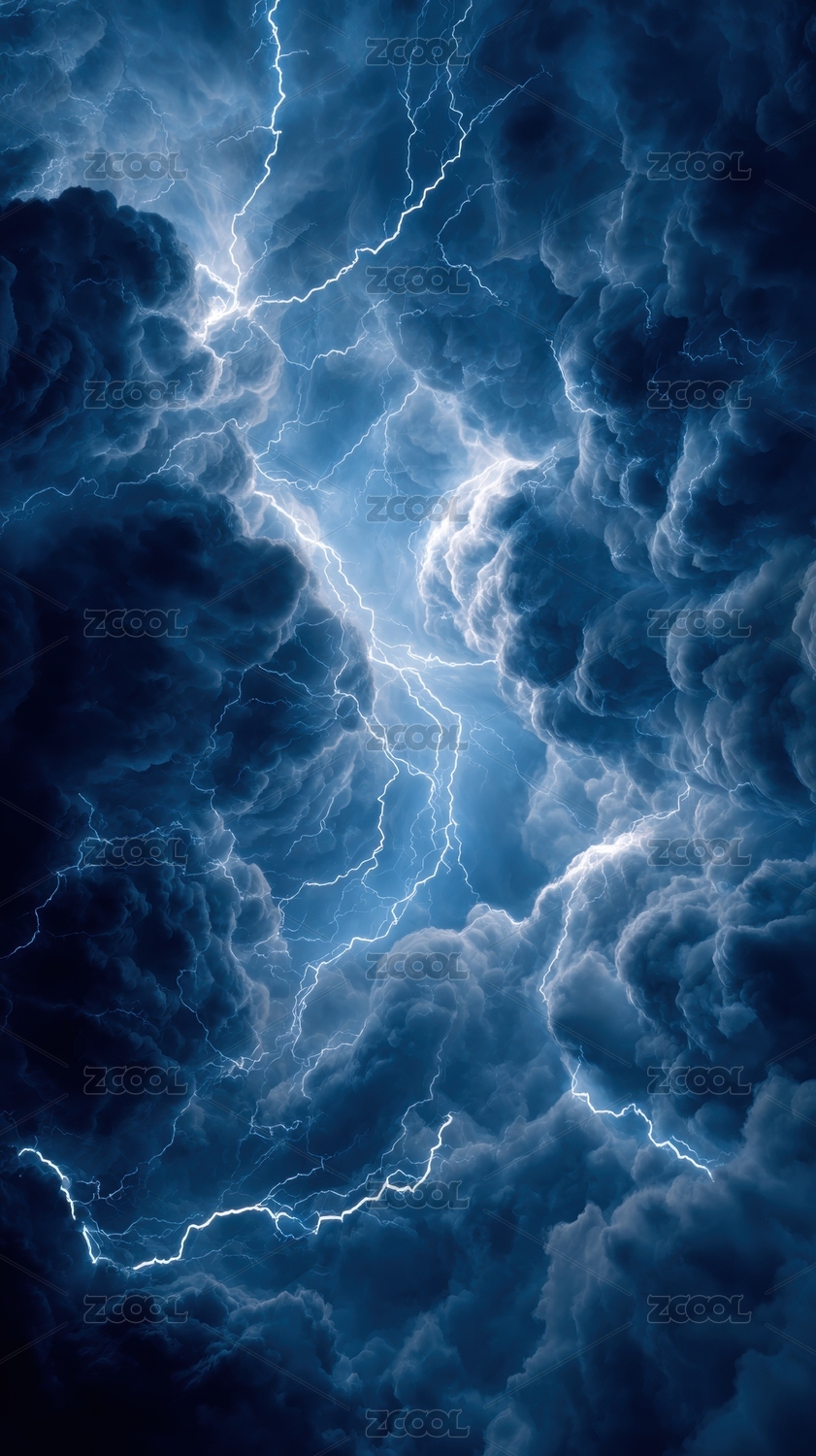 暴雨天乌云闪电蓝色背景