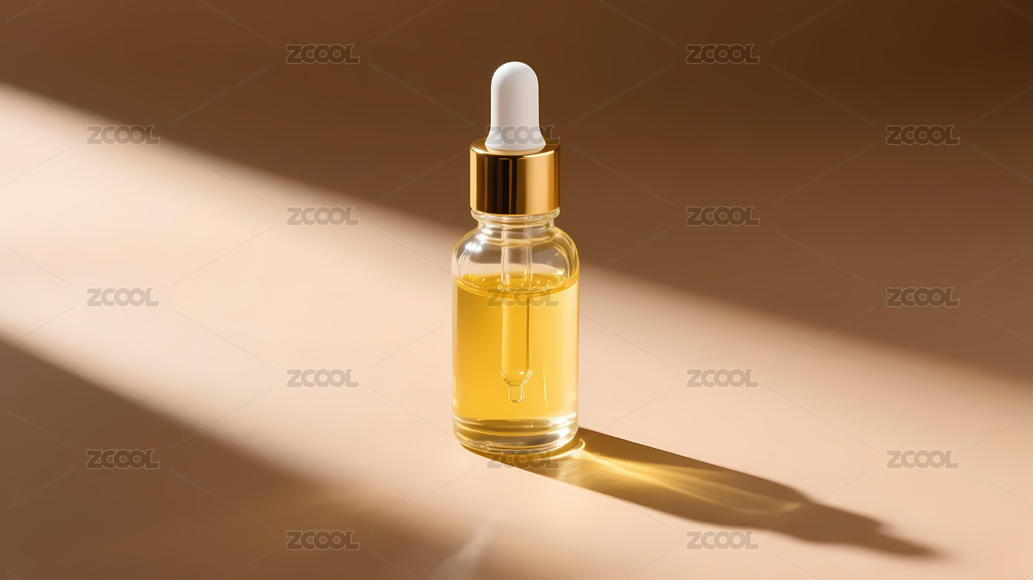 金色精华液瓶置于柔和光影中
