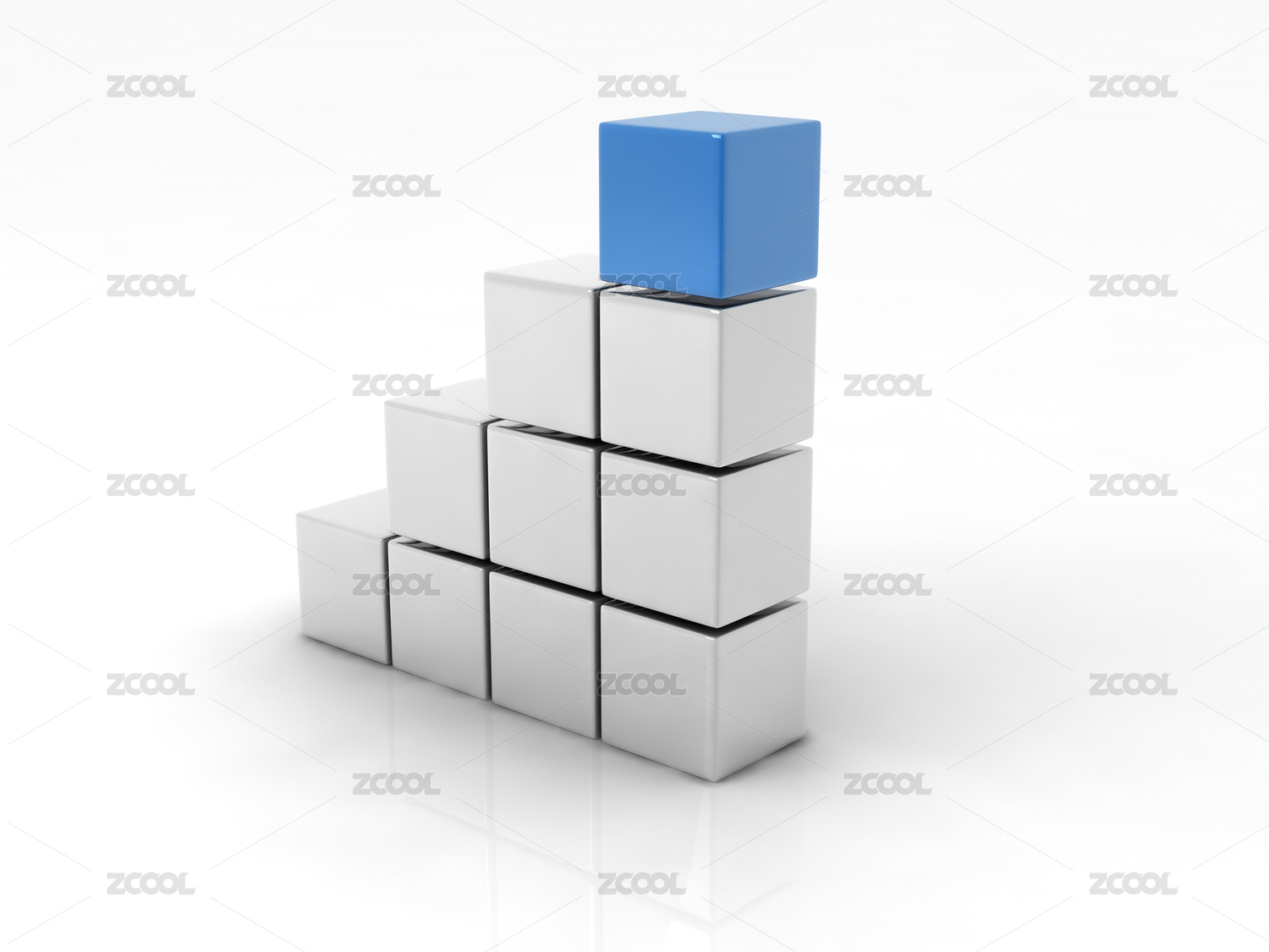 蓝色立方体堆叠于金属底座