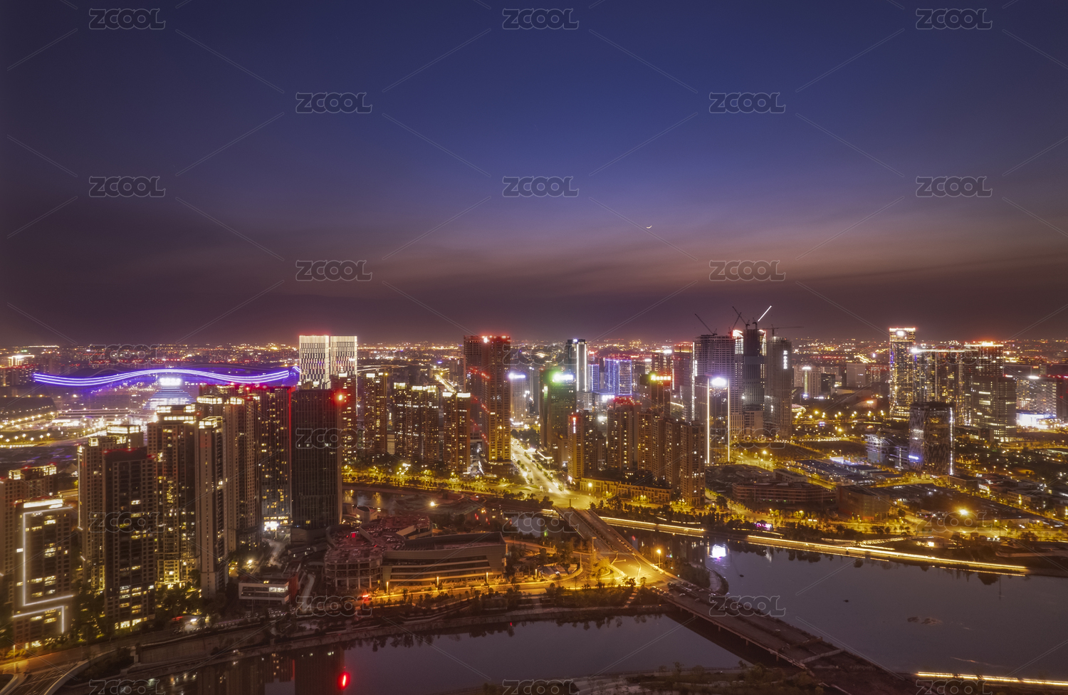 中国辽宁沈阳市中心城市浑河边夜景高楼大厦