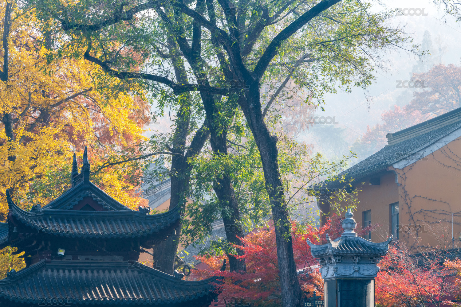 秋天中国扬州大明寺的枫树枫叶与康熙御碑亭