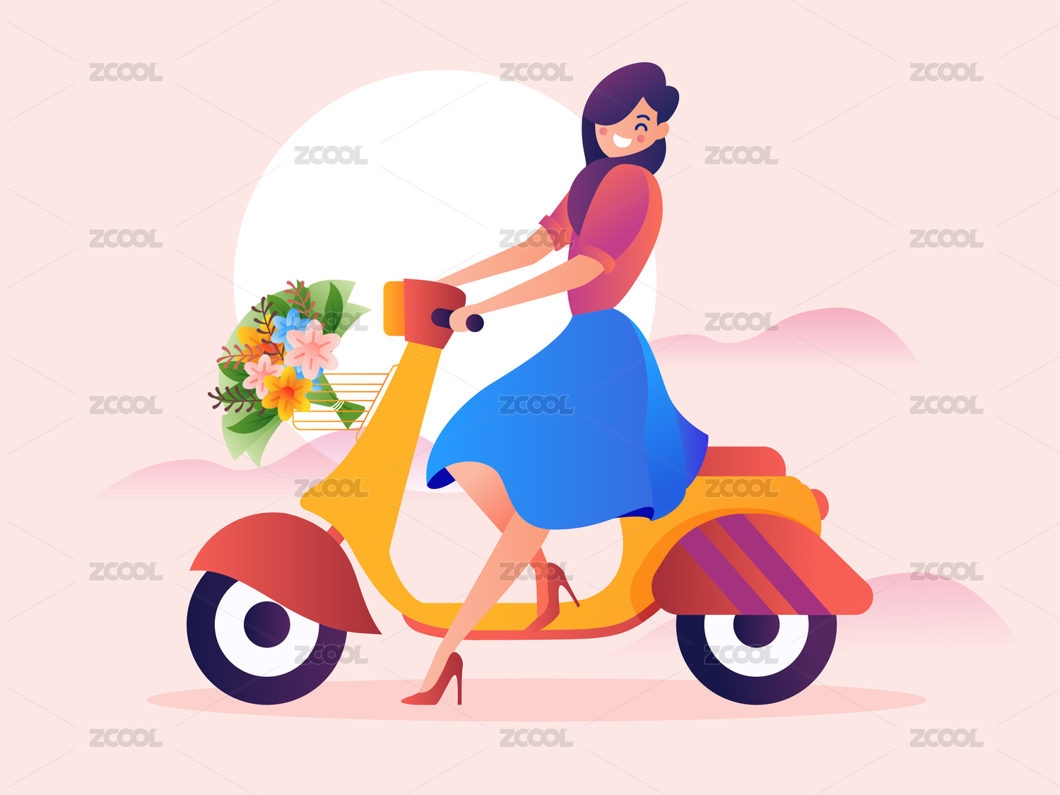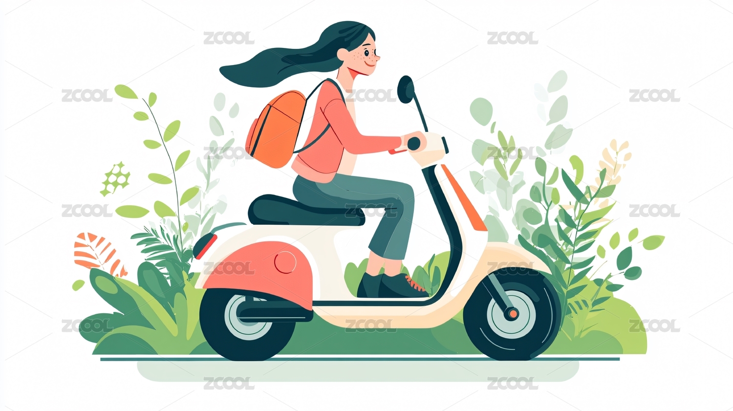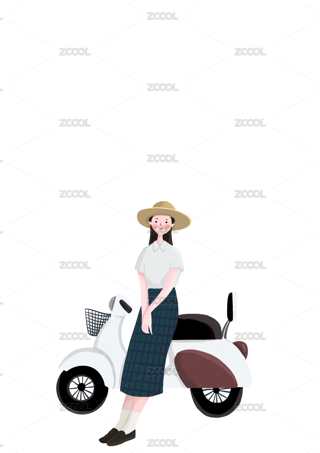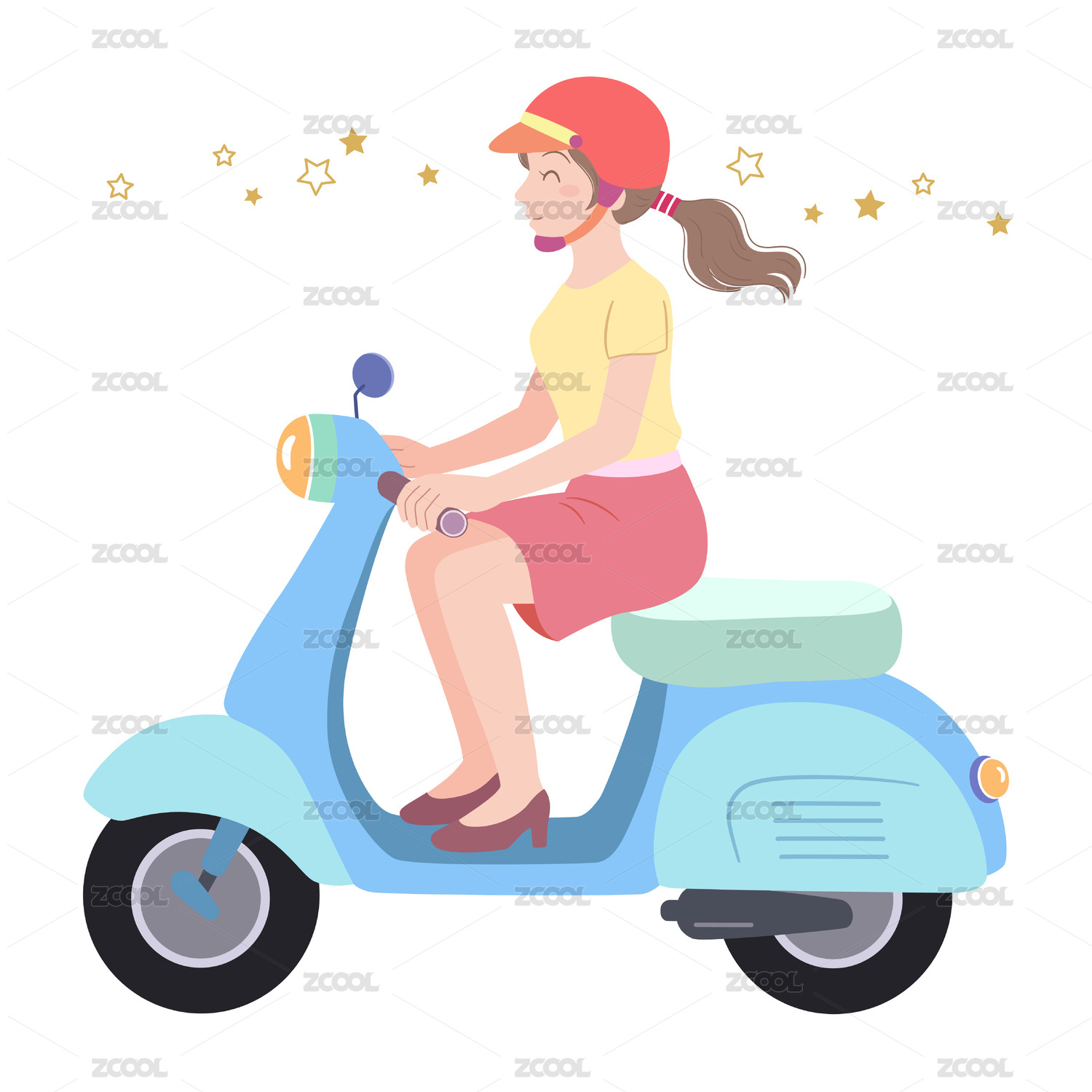 电动车,美女,夏日,服饰,卡通,插画,动物