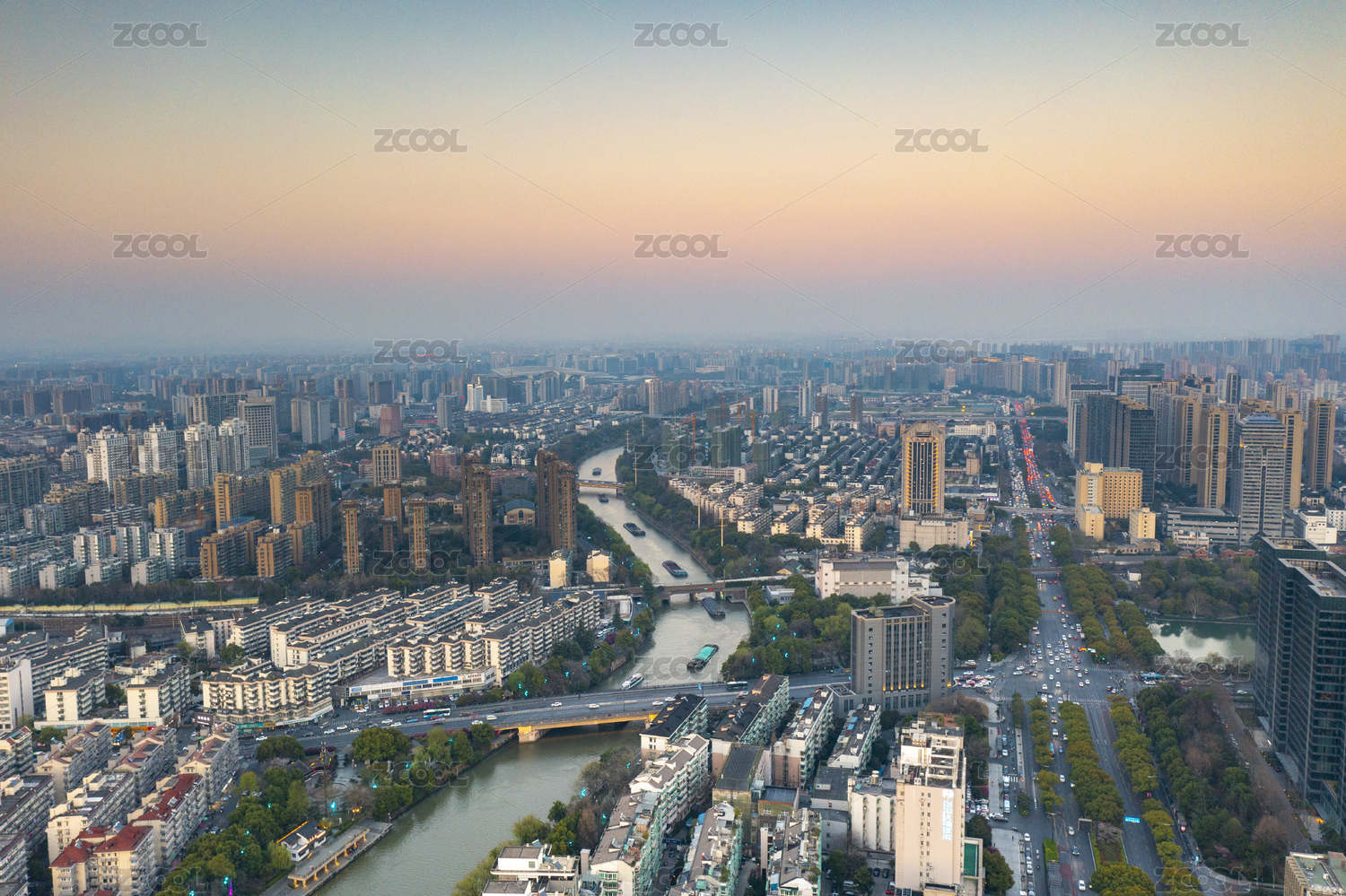 江苏省淮安市盐河穿城而过的淮阴区城市风光