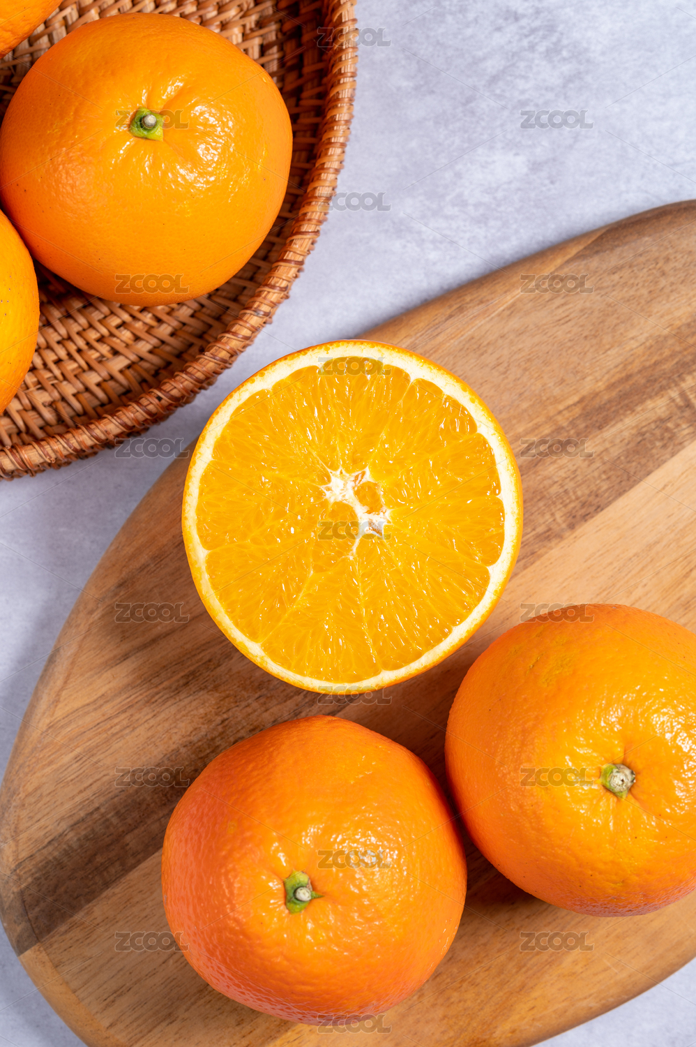 木底垫子上放着一盘切开的赣南脐橙果肉