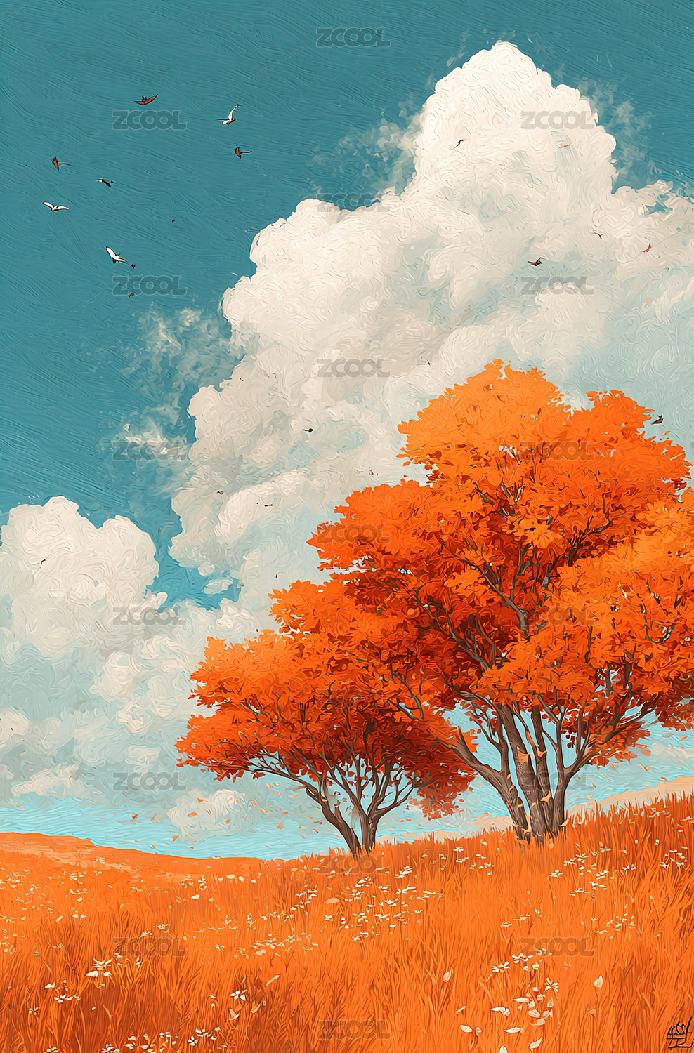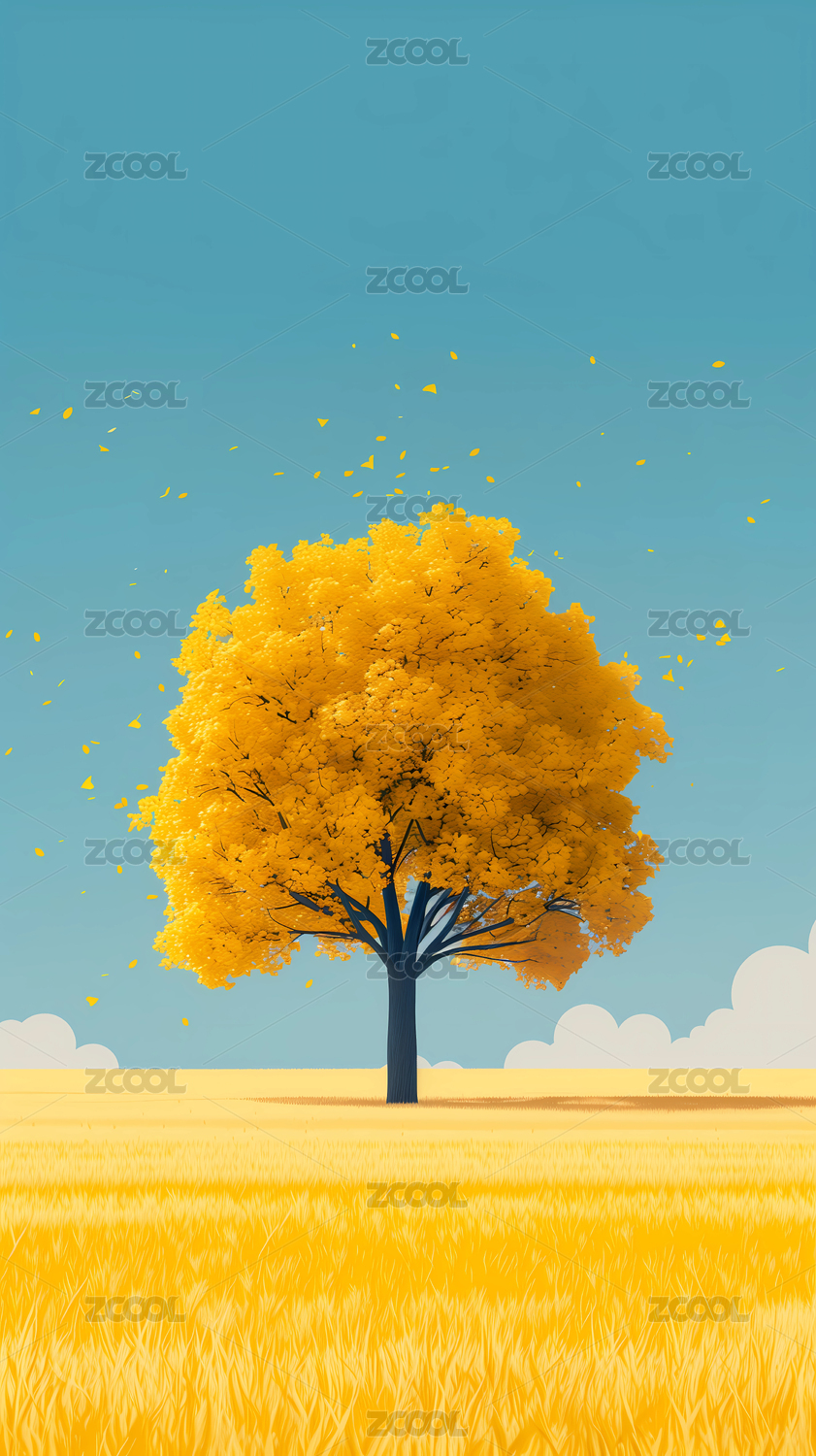 装饰画,平面,AI,背景,壁纸,元素,素材,绘画,树,大树