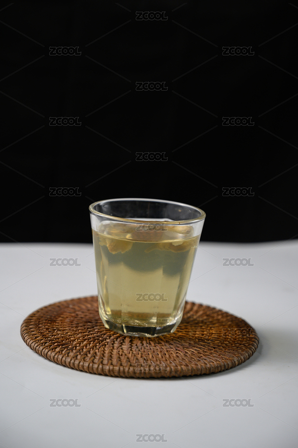 桌面上的杯子里的甘甜的黄柏茶