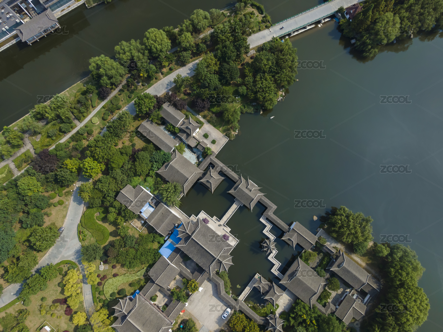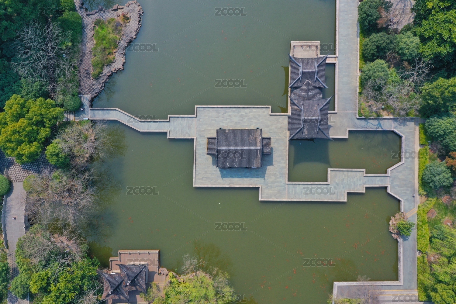 航拍海南海口五公祠古典园林湖泊及古建筑群