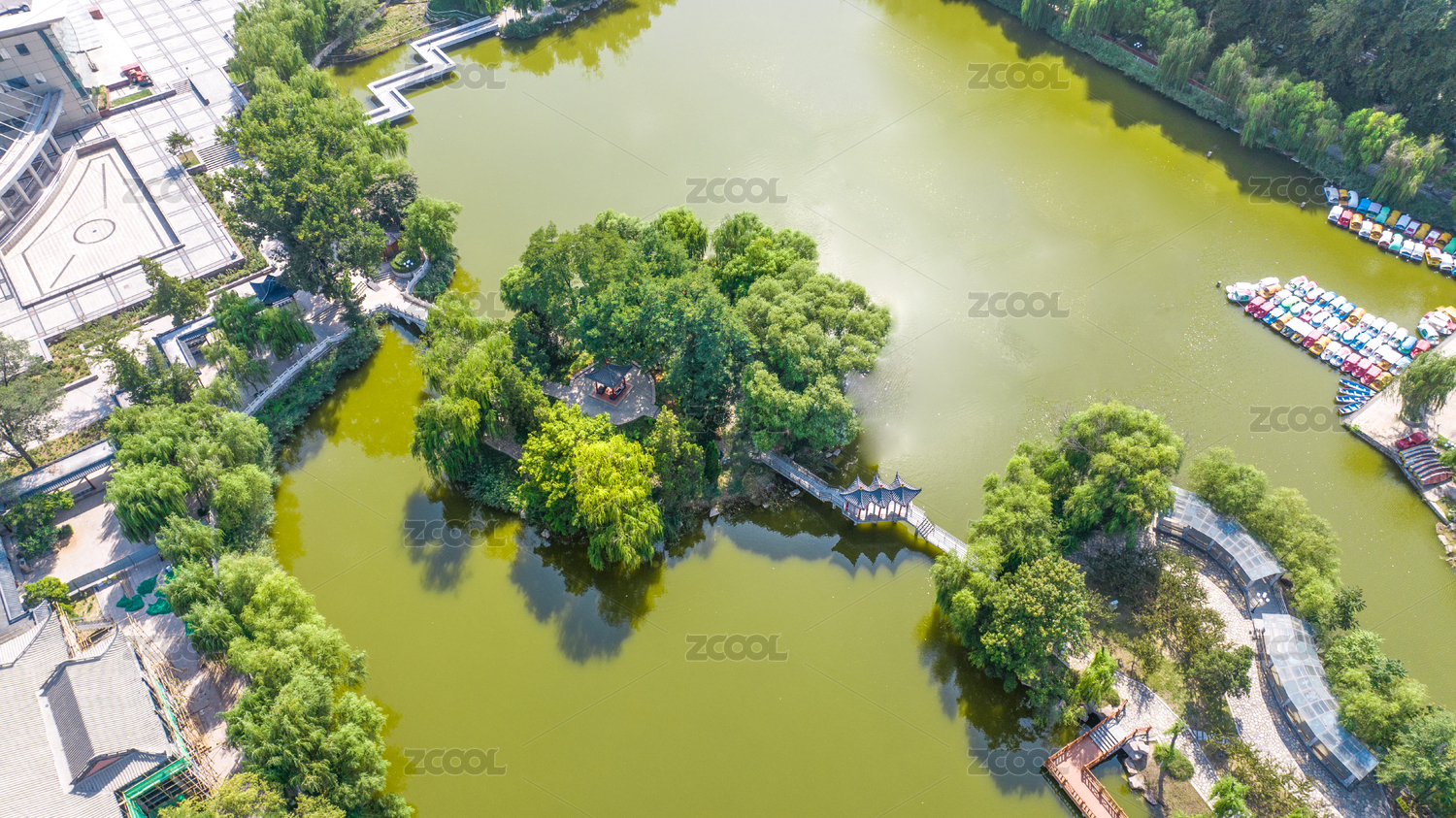 航拍河北省石家庄市长安区长安公园与龙泉塔