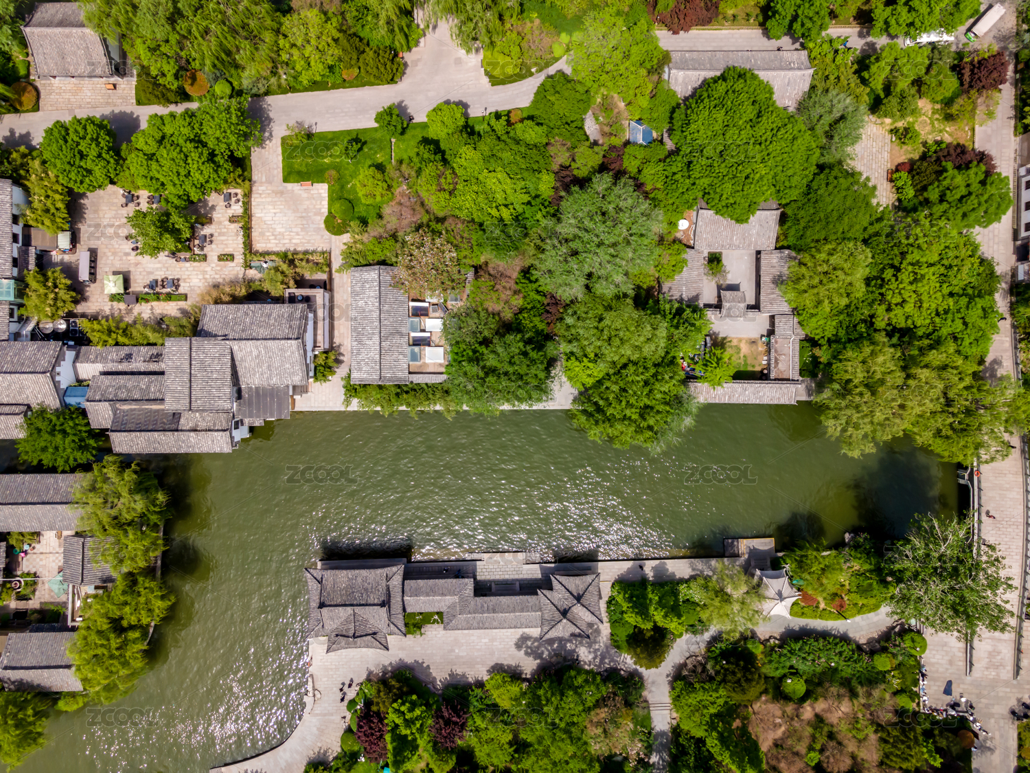 航拍江苏省扬州市瘦西湖风景区与大明寺