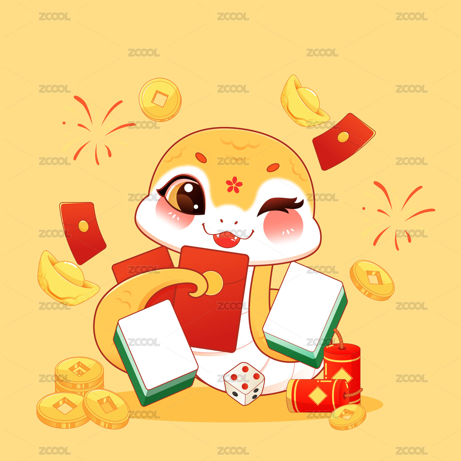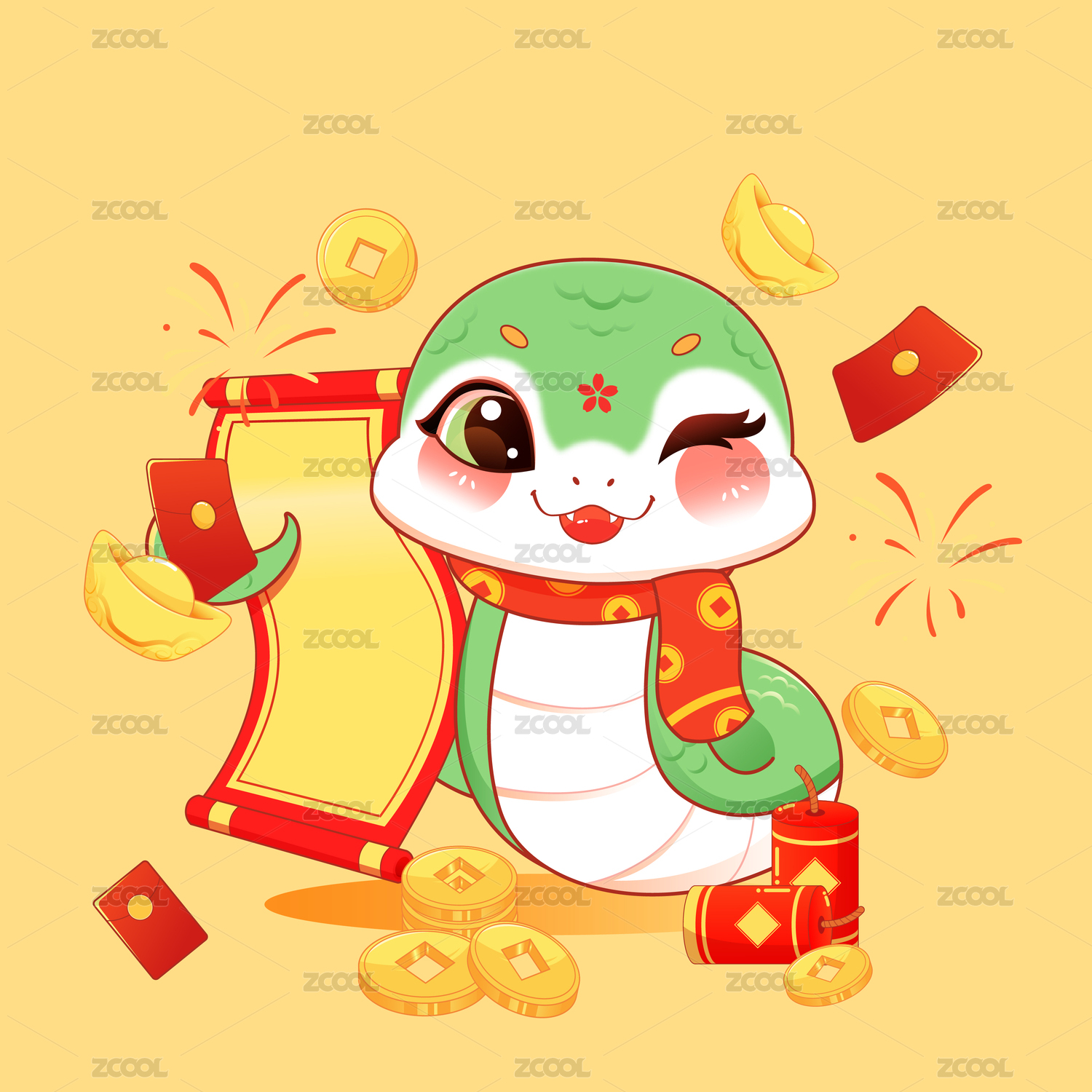 2025年,蛇年,巳蛇,蛇,十二生肖,卡通,动物,小年,年俗,元旦