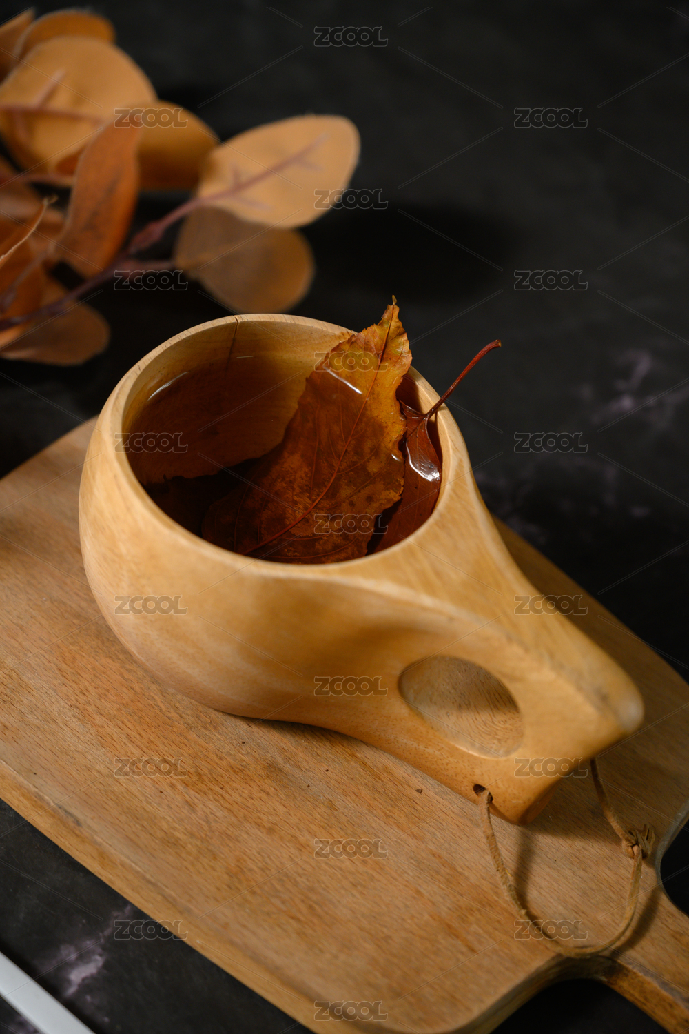 桌面上的杯子里的甘甜可口的胰岛果茶