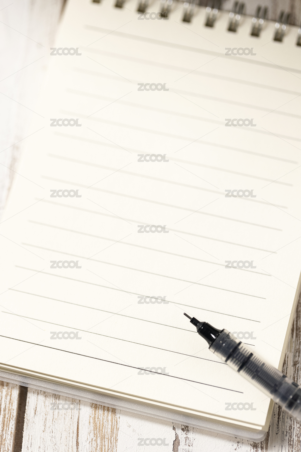 手握着一只黑色的中性笔在空白的笔记本上准备书写