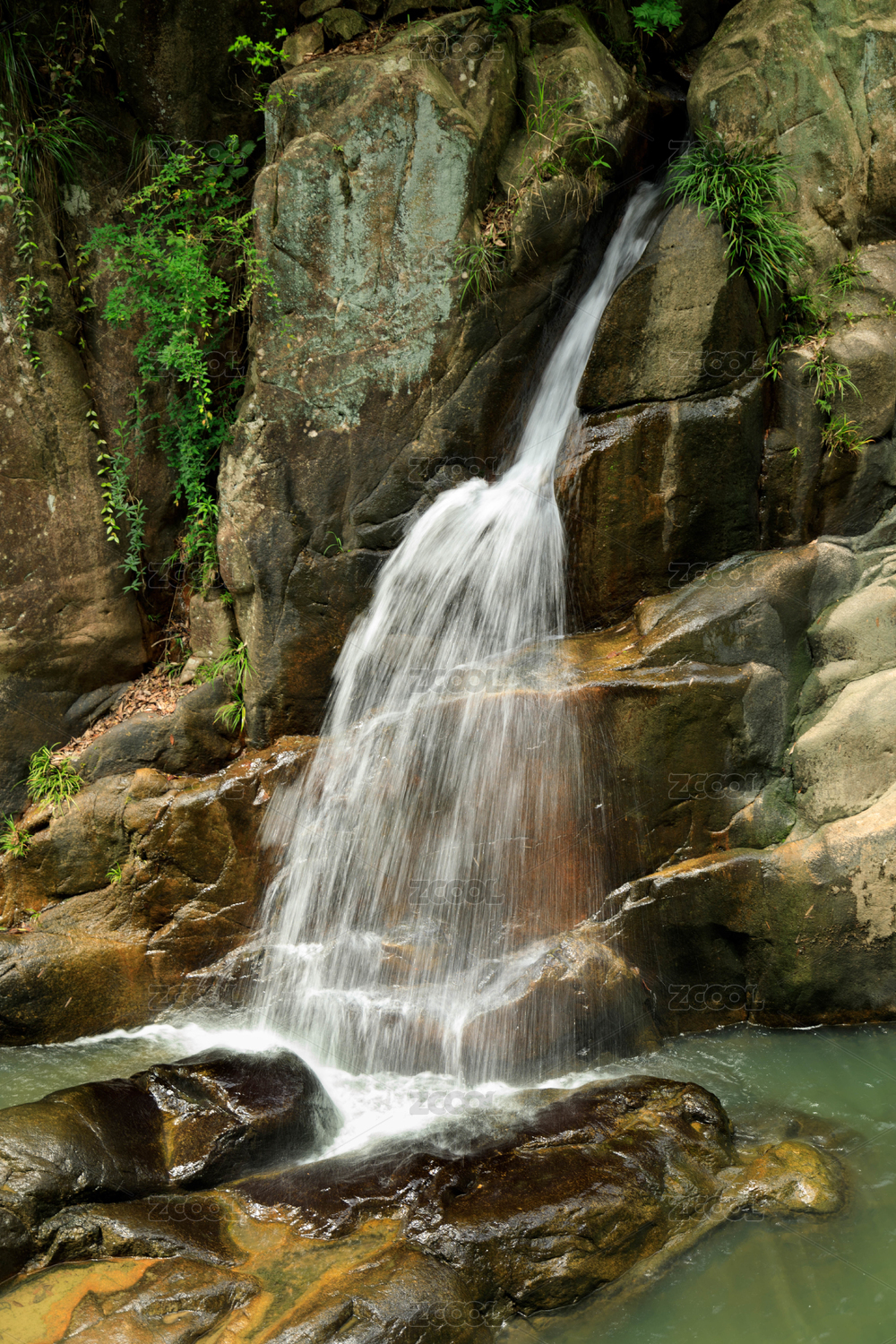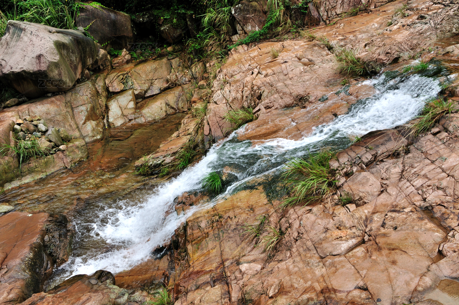 浙江台州5A景区天台山脉琼台仙谷流水小瀑布