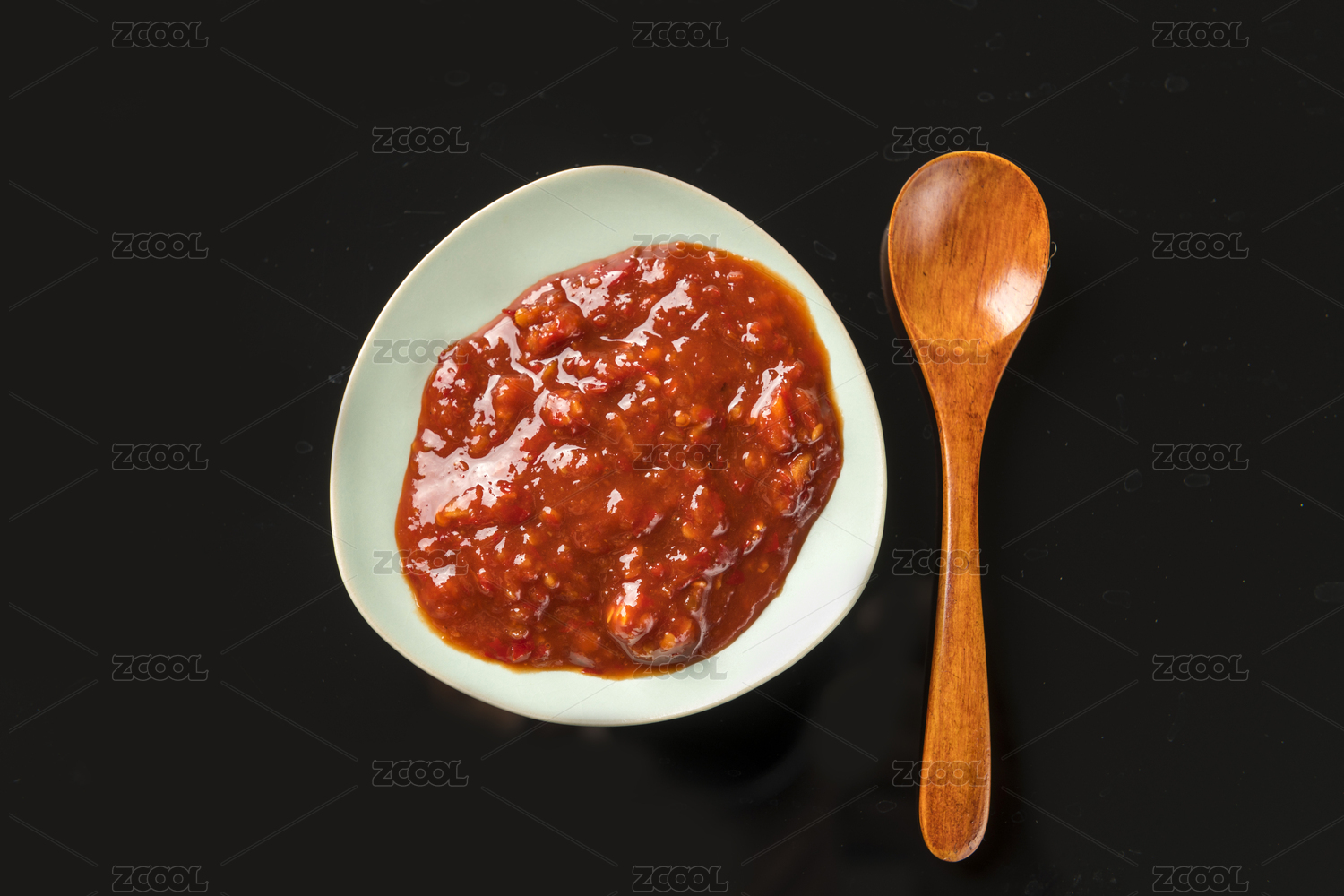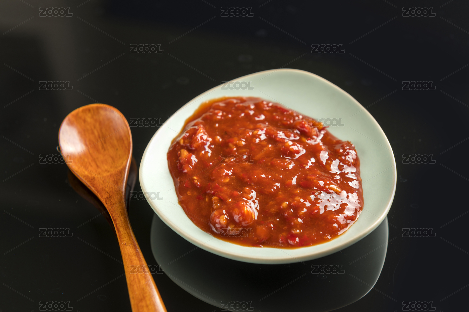 桌面上的盘子里的美味可口的传统豆瓣酱