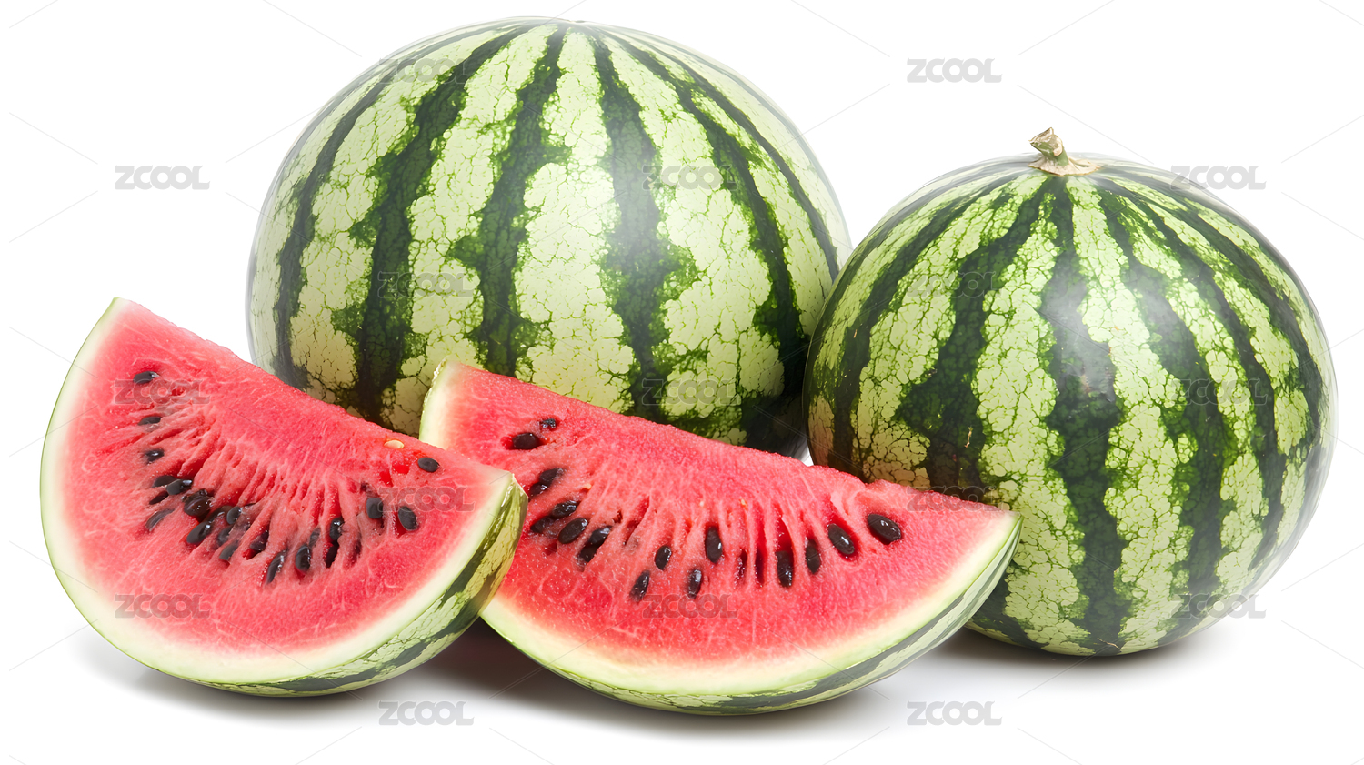 白底上放着一个大西瓜和两块西瓜