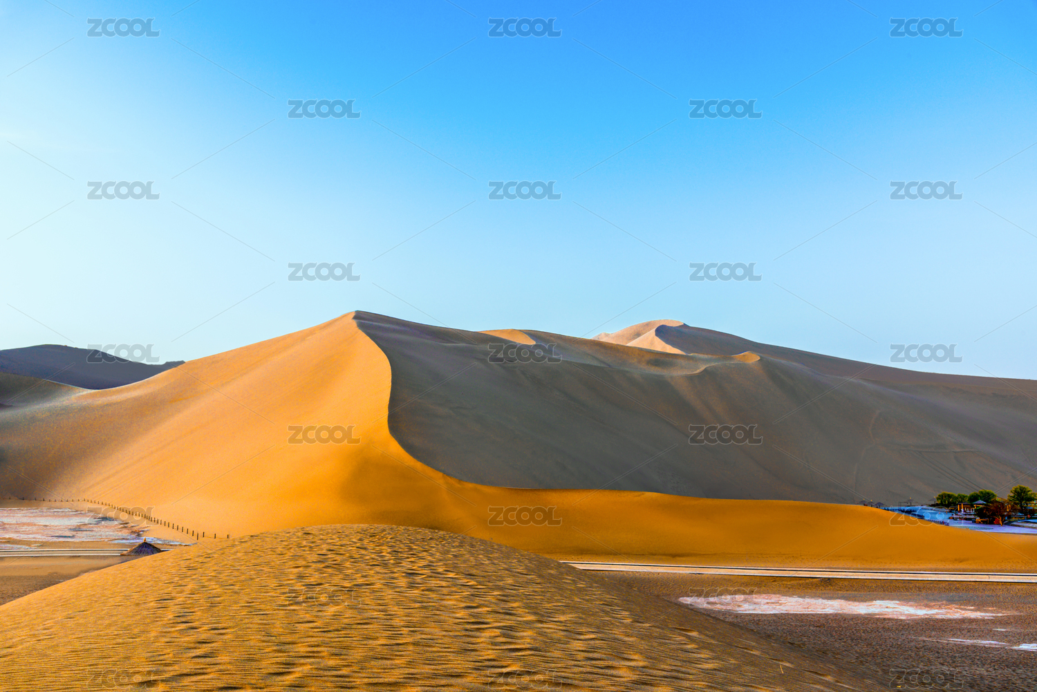 中国甘肃敦煌鸣沙山月牙泉景区在夏天的美丽风景