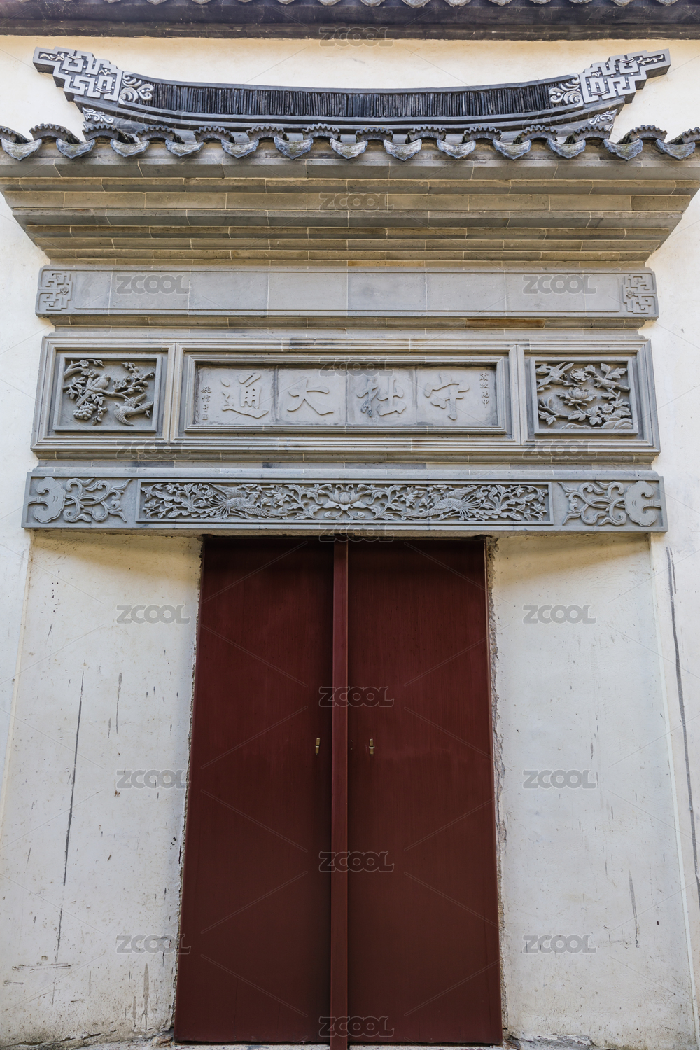 白墙黛瓦石雕江南庭院中式门头