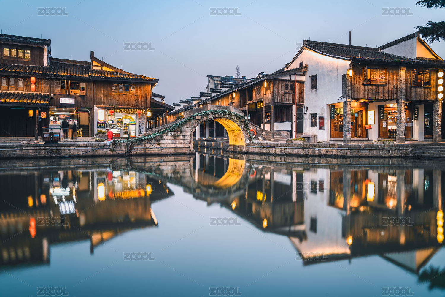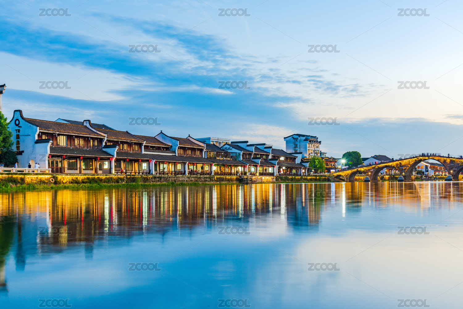 中国浙江西塘古镇夜景风光