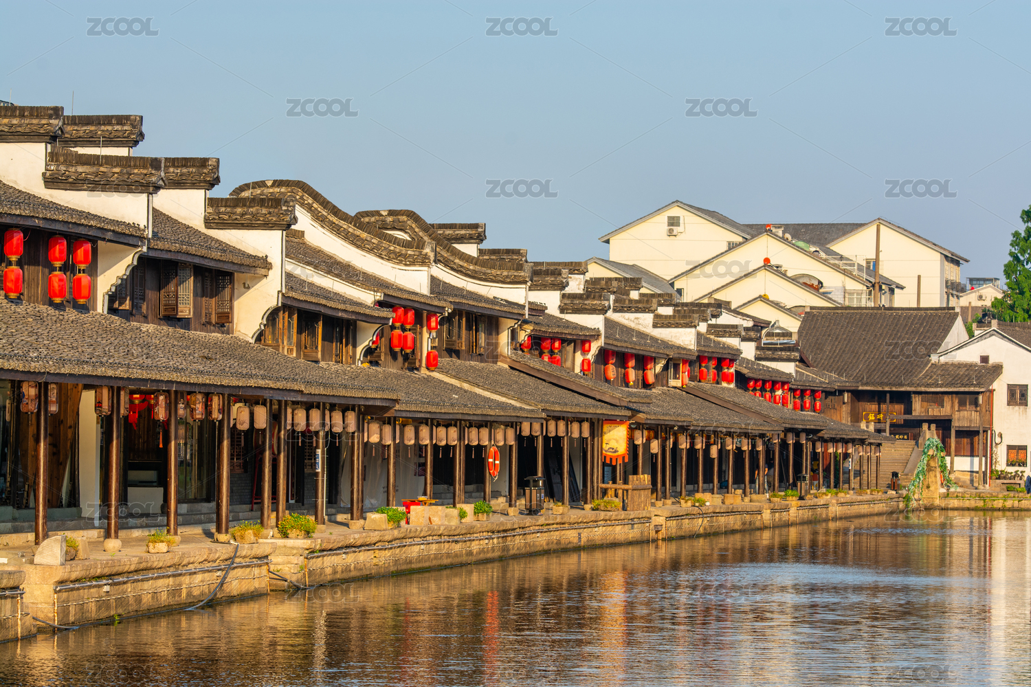 浙江嘉兴月河历史街区江南水乡滨水房屋