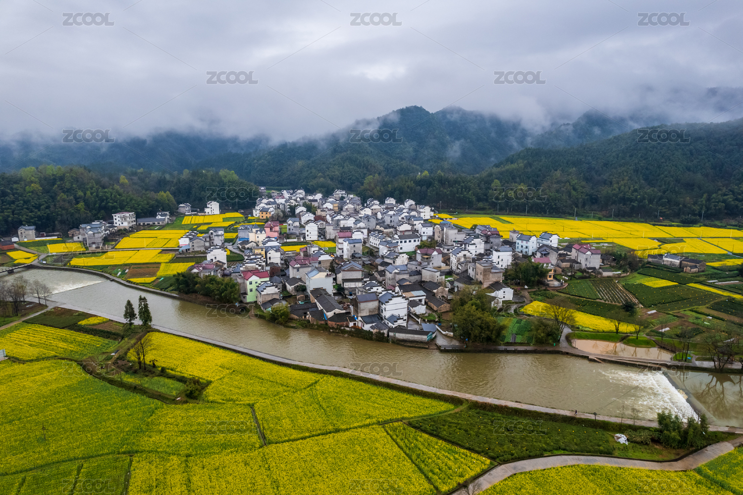 中国安徽省黄山市休宁县阜田村油菜花航拍