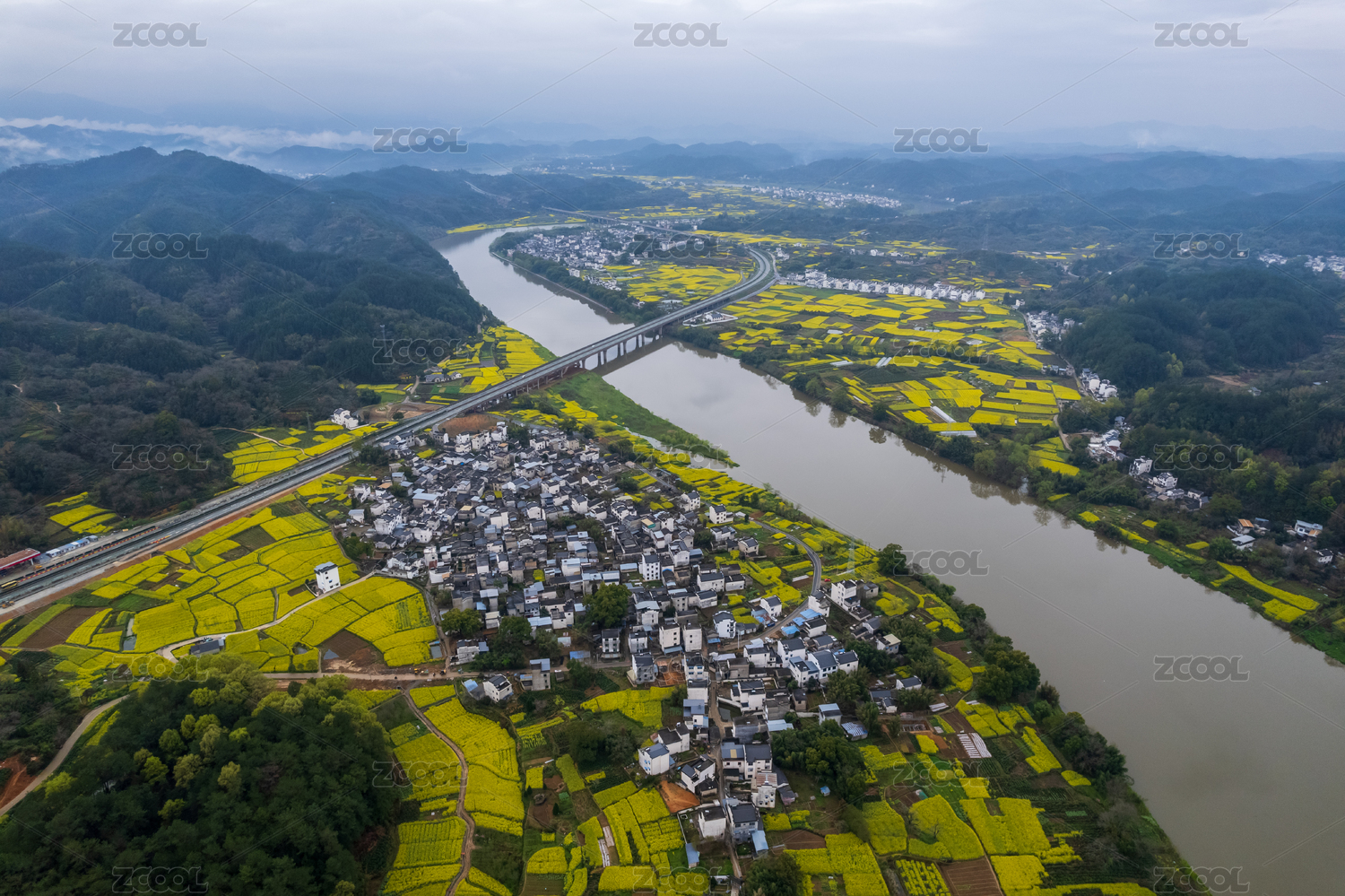 安徽省宣城市绩溪县太极湖村油菜花航拍