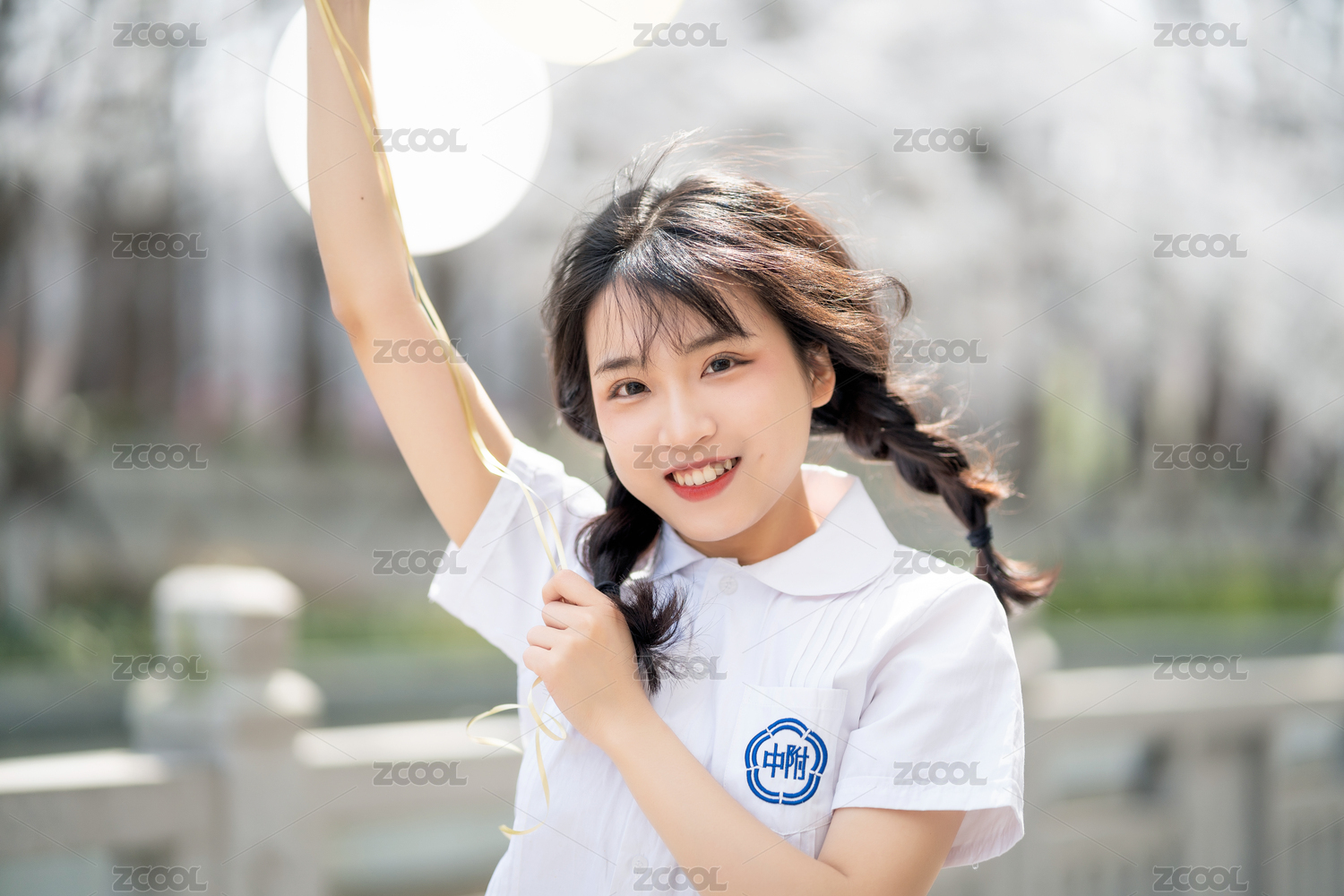 在珍珠河边樱花树下穿校服的少女