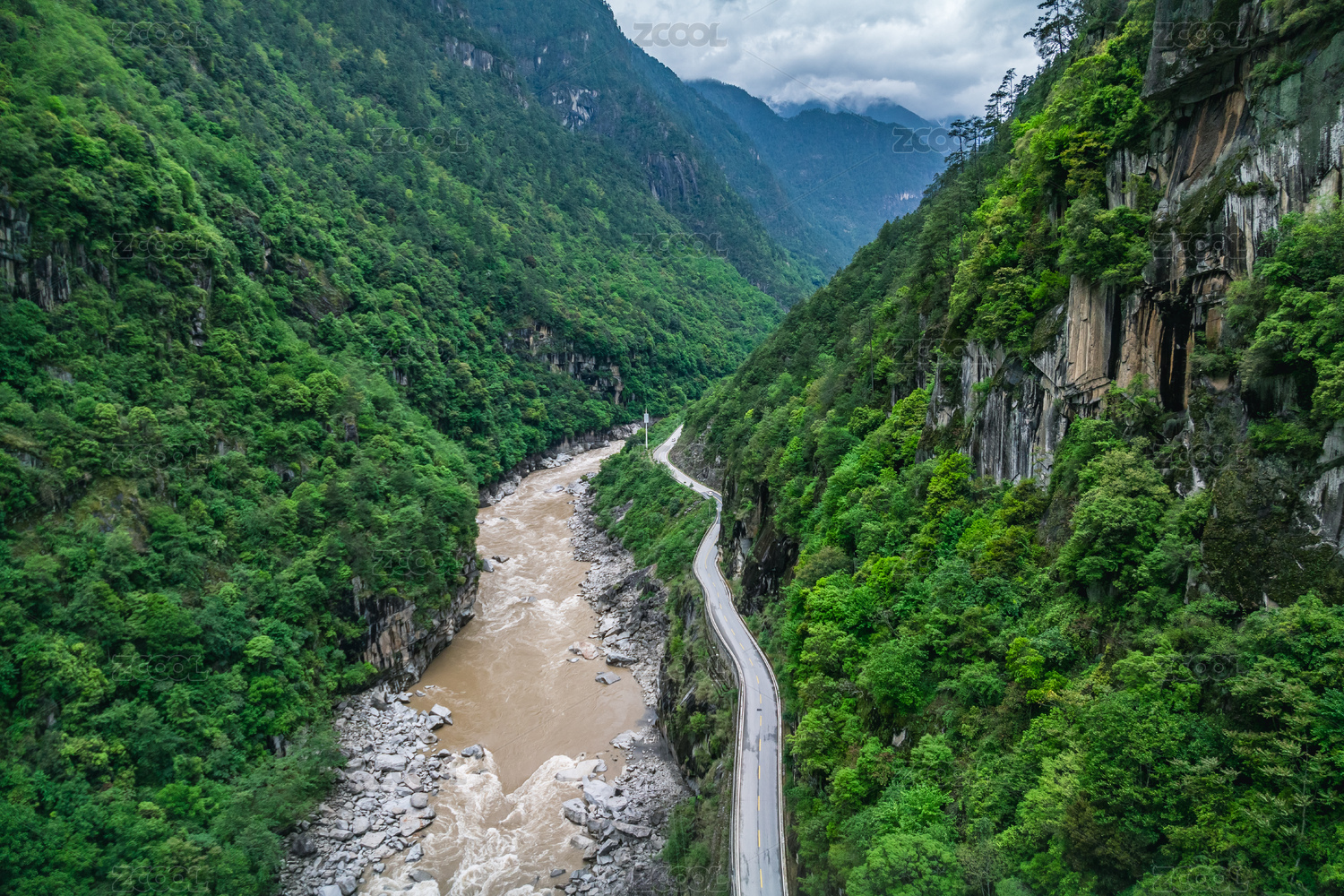 中国西藏滇藏线丙察察公路怒江峡谷航拍风光
