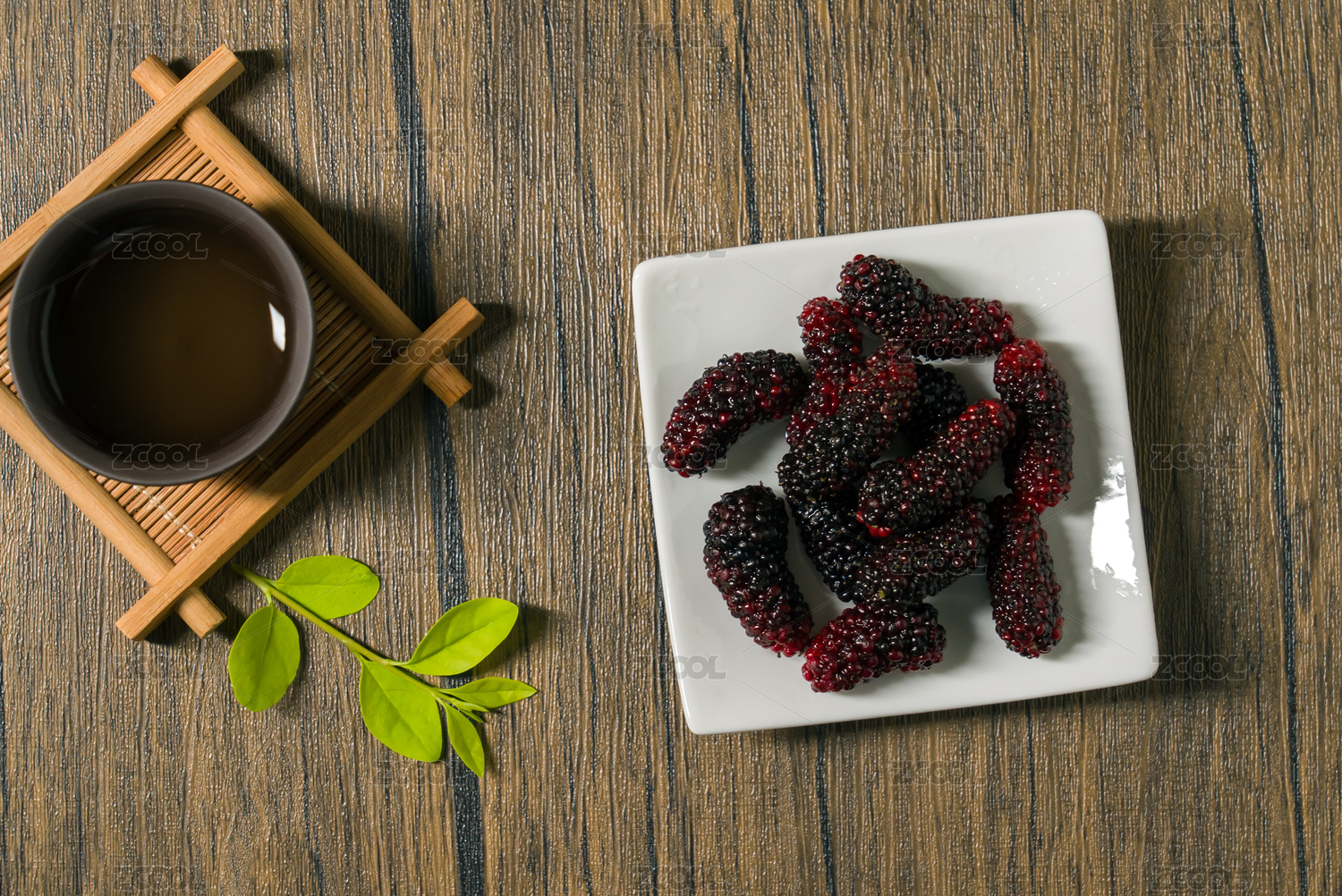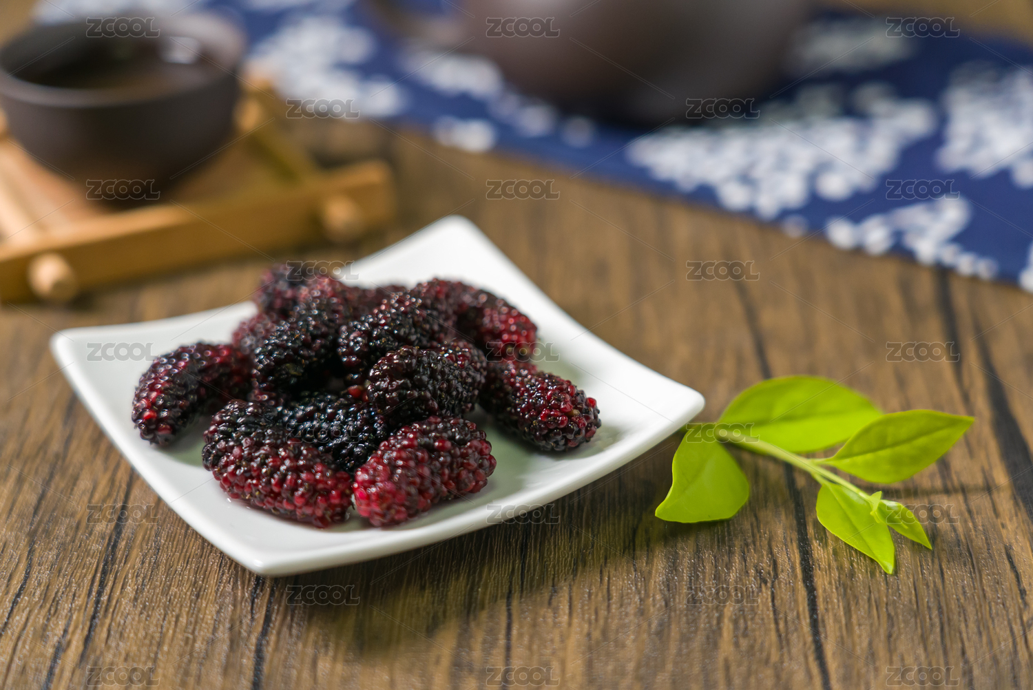 木板上放着一碟鲜桑葚