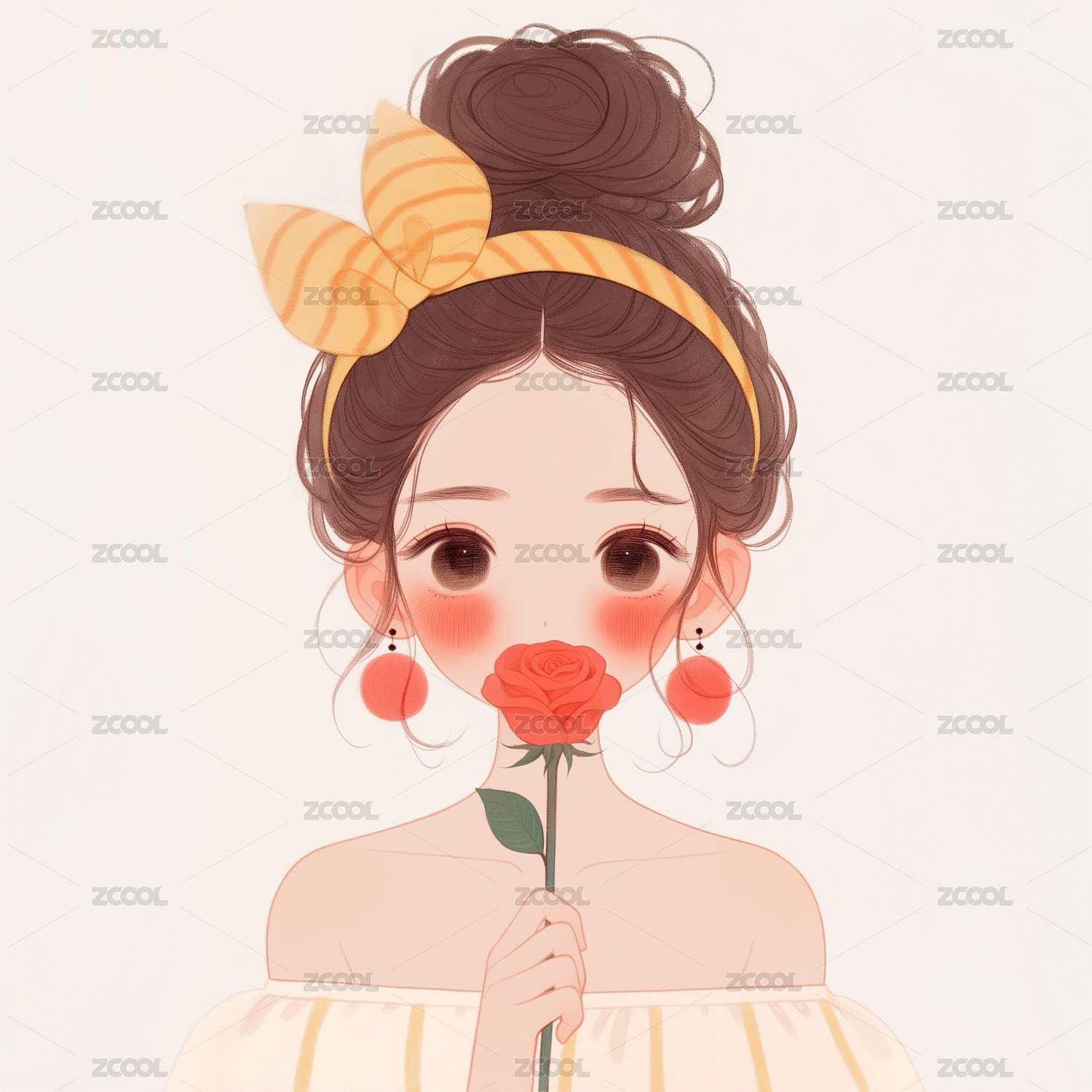 手拿玫瑰的女孩插画