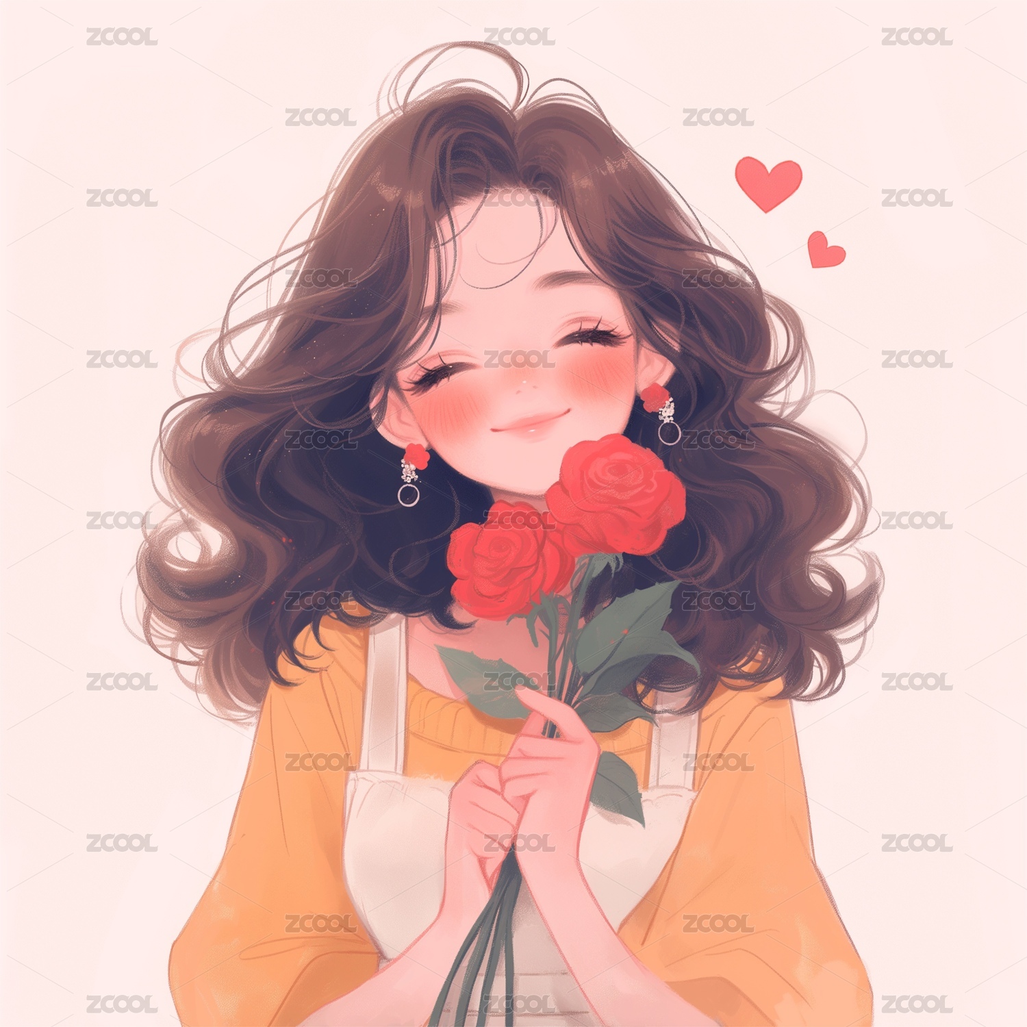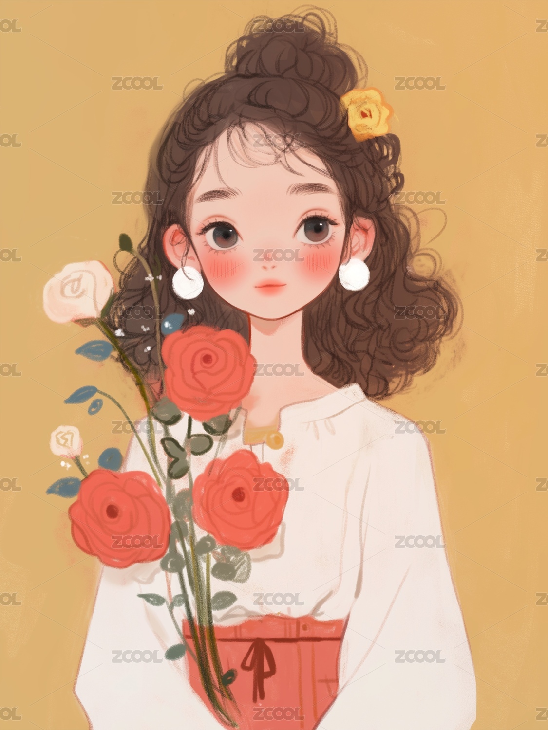玫瑰花女孩的插画