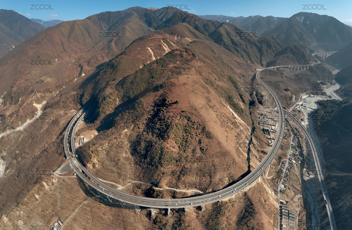 航拍四川雅西高速干孩子双螺旋隧道全景