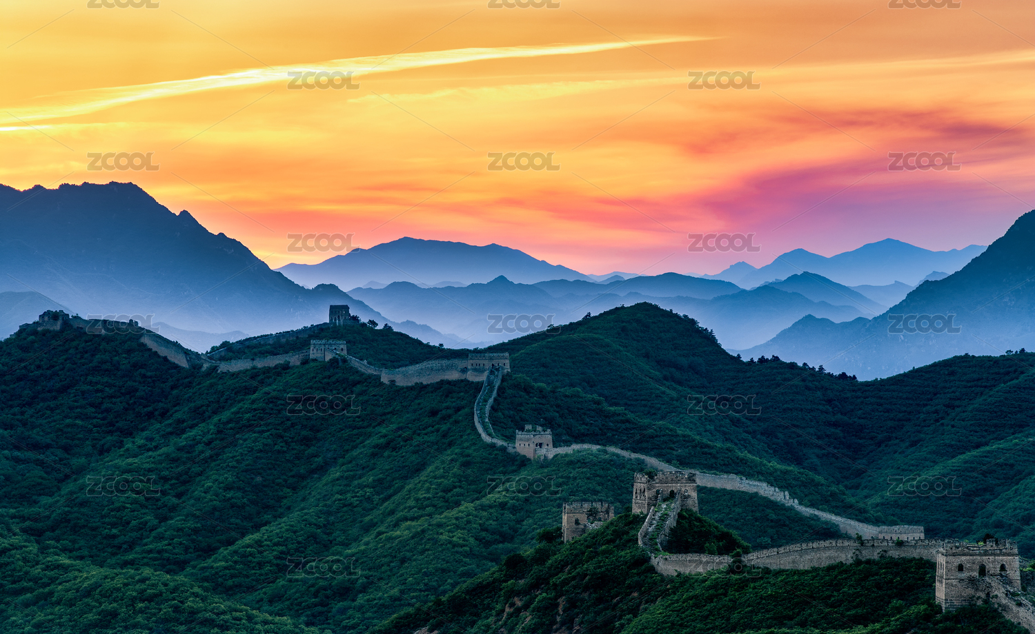 河北省承德市金山岭长城日落